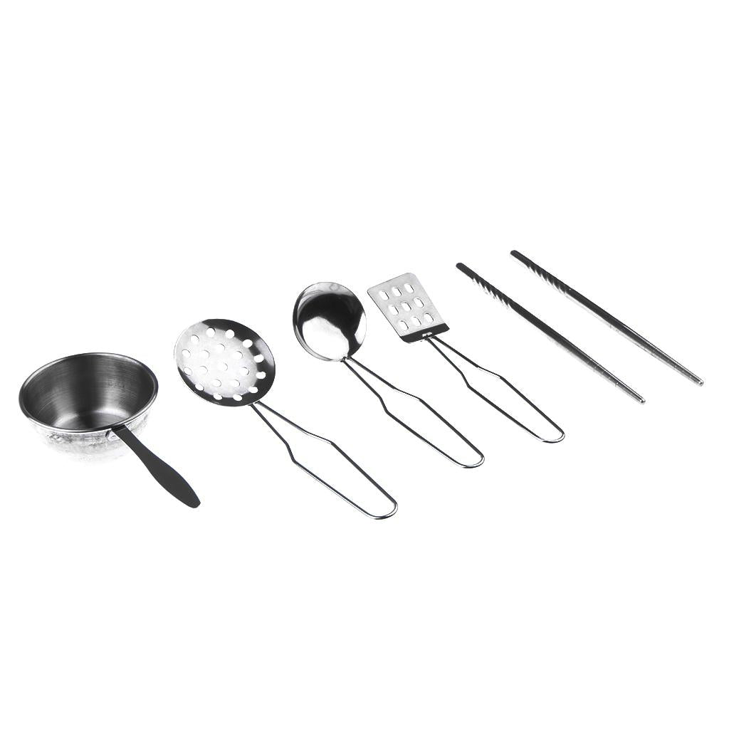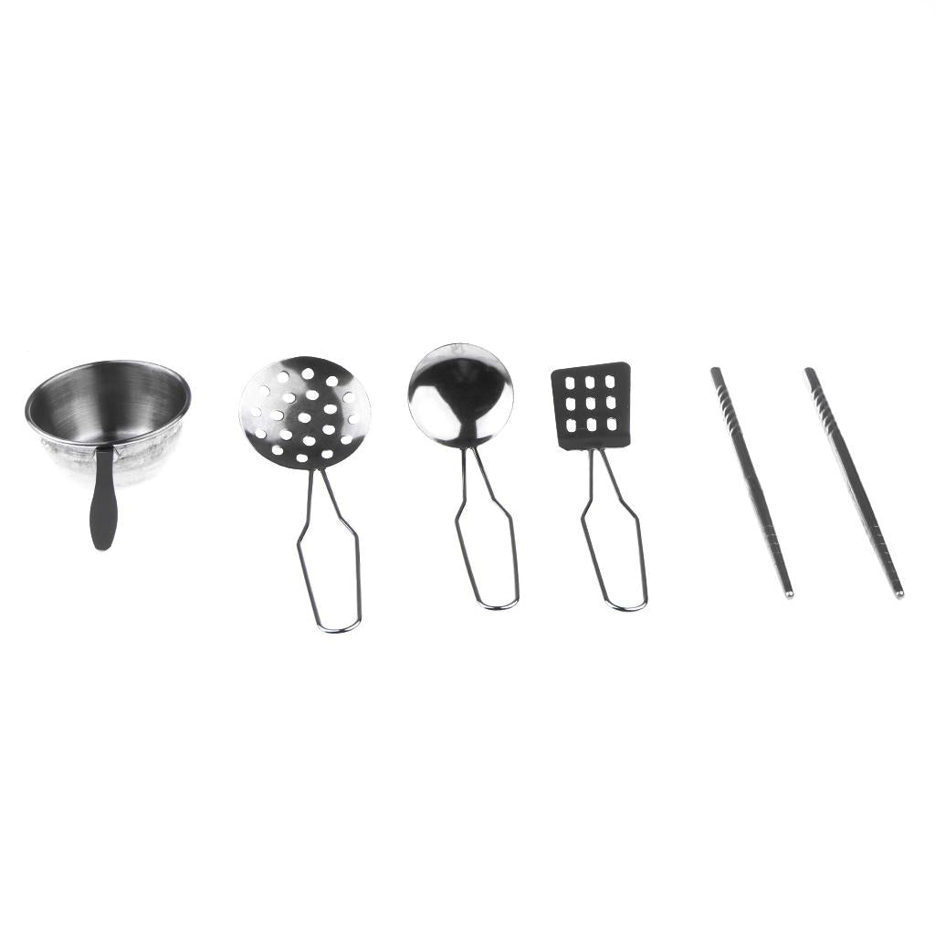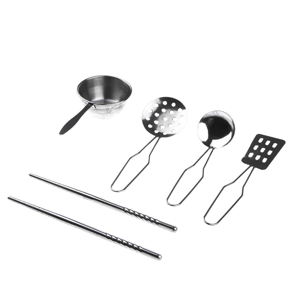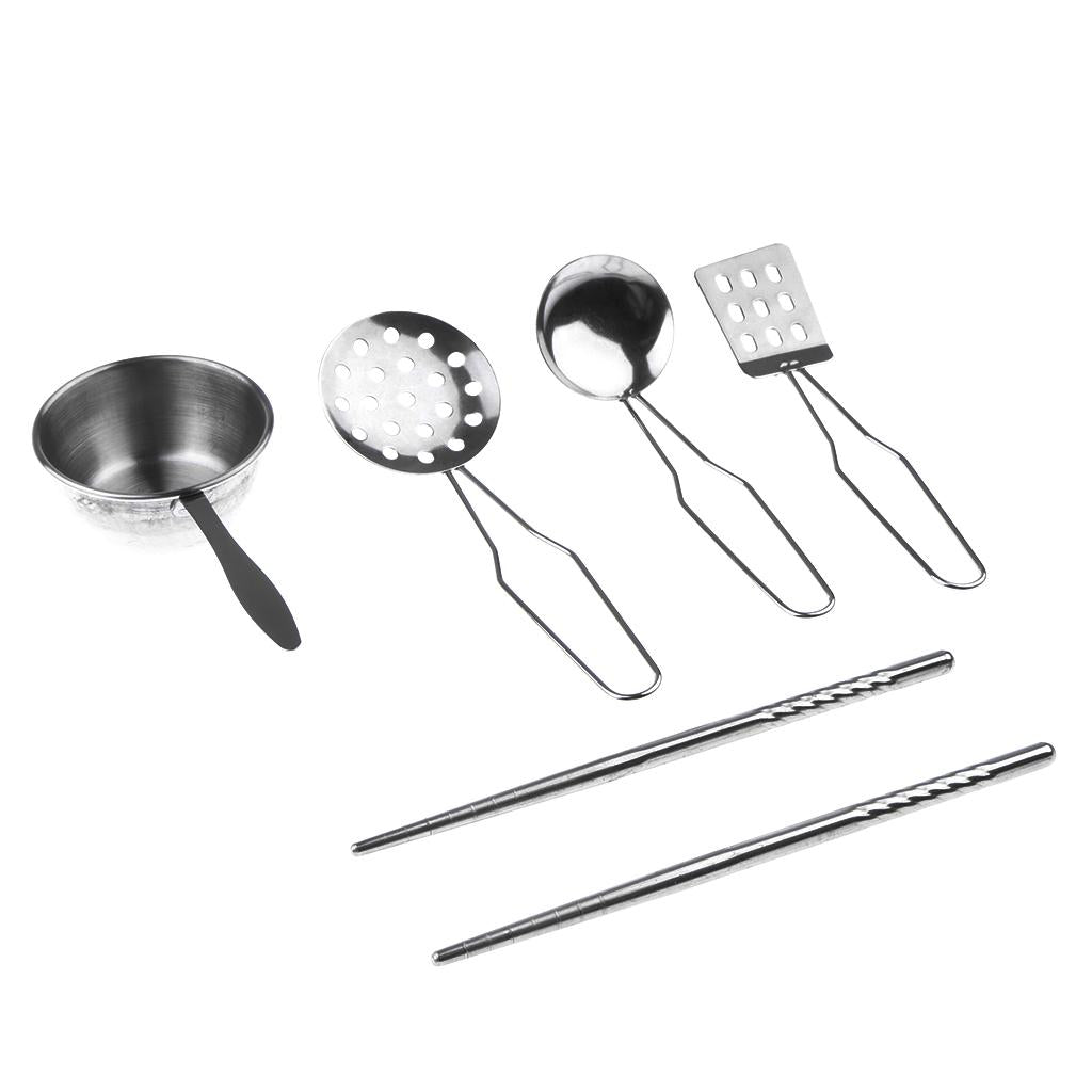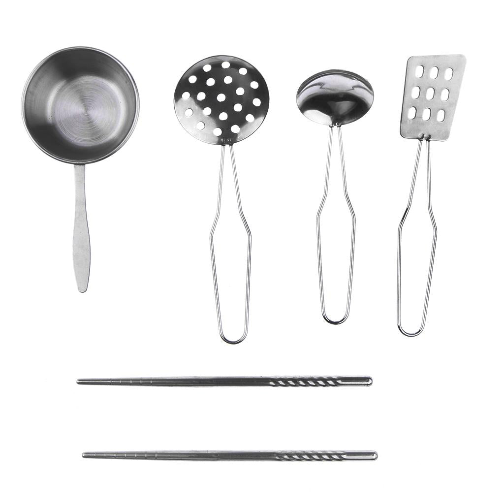 Kids Stainless Steel Kitchen Cooking Utensils Toy Pretend Play Toy - B (Pack of 5, includes ladle, spatula, slotted spoon, chopsticks, etc.)