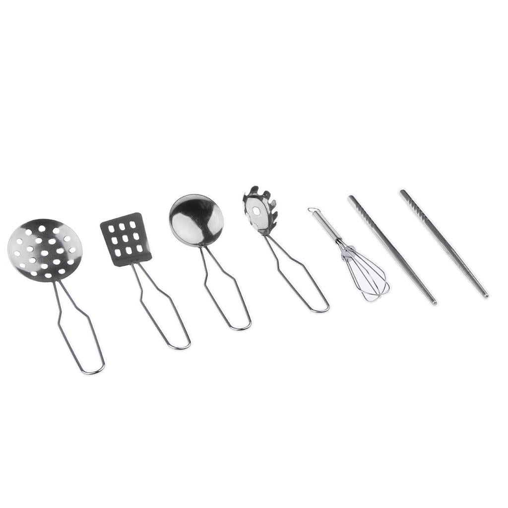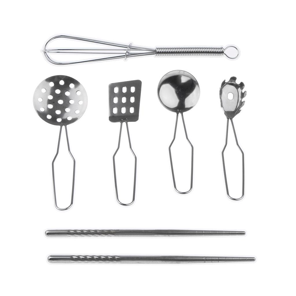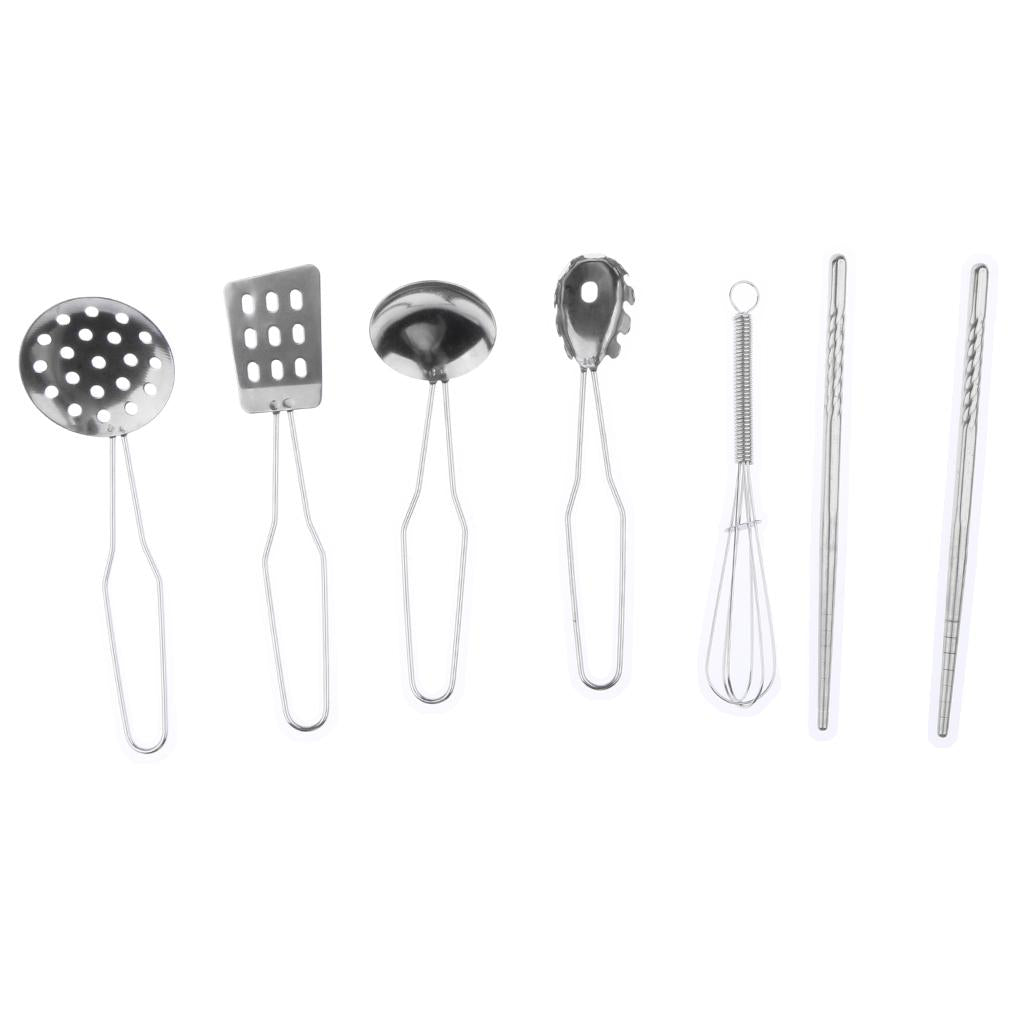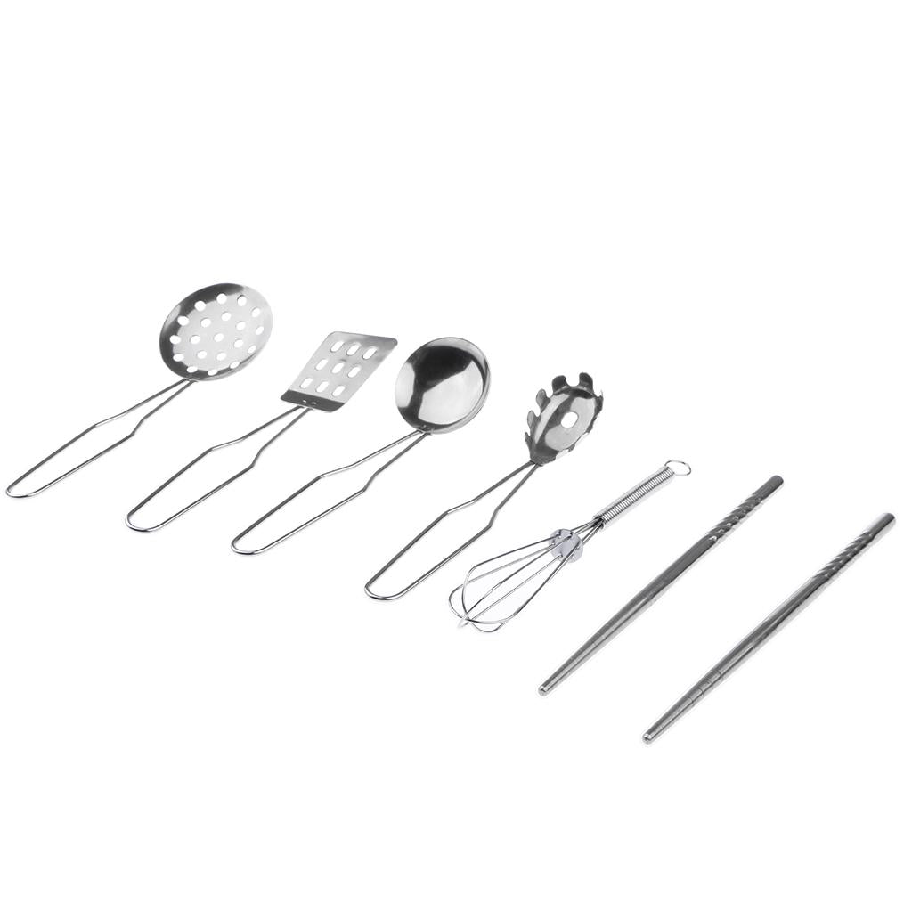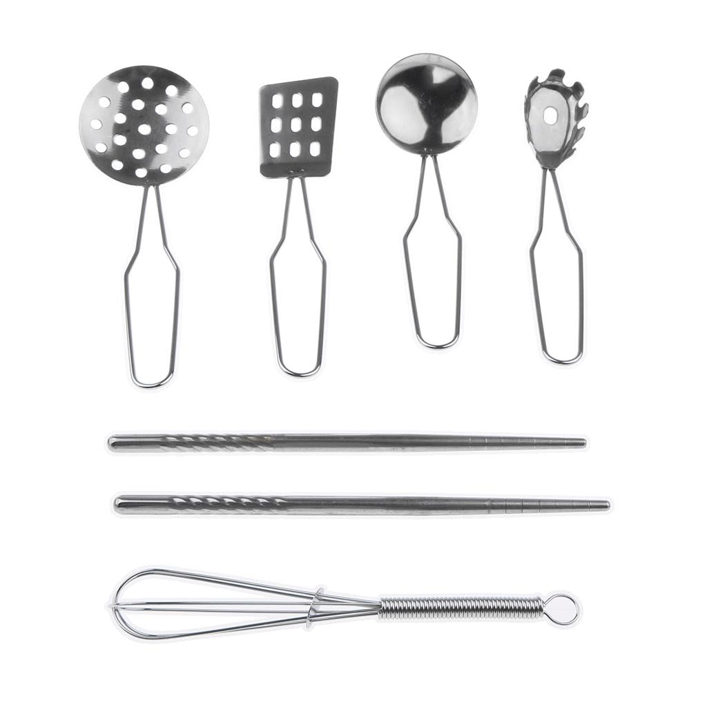 Kids Stainless Steel Kitchen Cooking Utensils Toy Pretend Play Toy - G (Pack of 6, includes whisk, ladle, spatula, slotted spoon, chopsticks, spaghetti server)