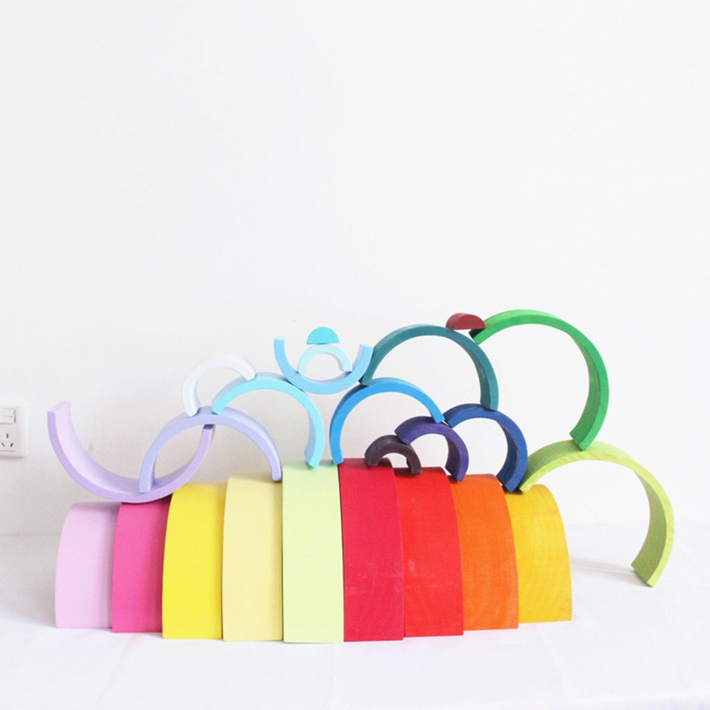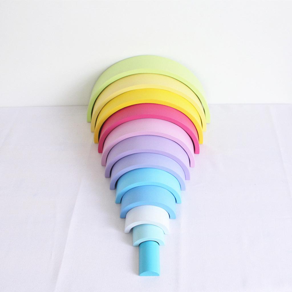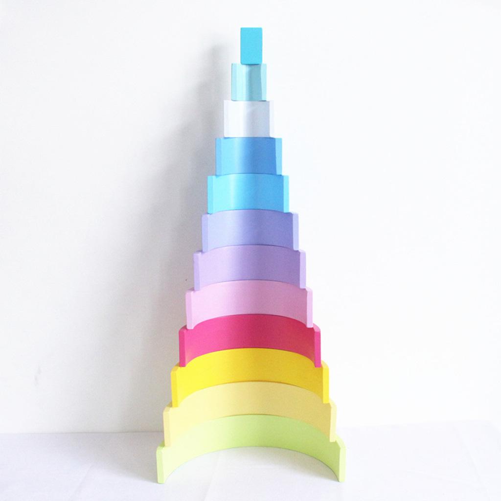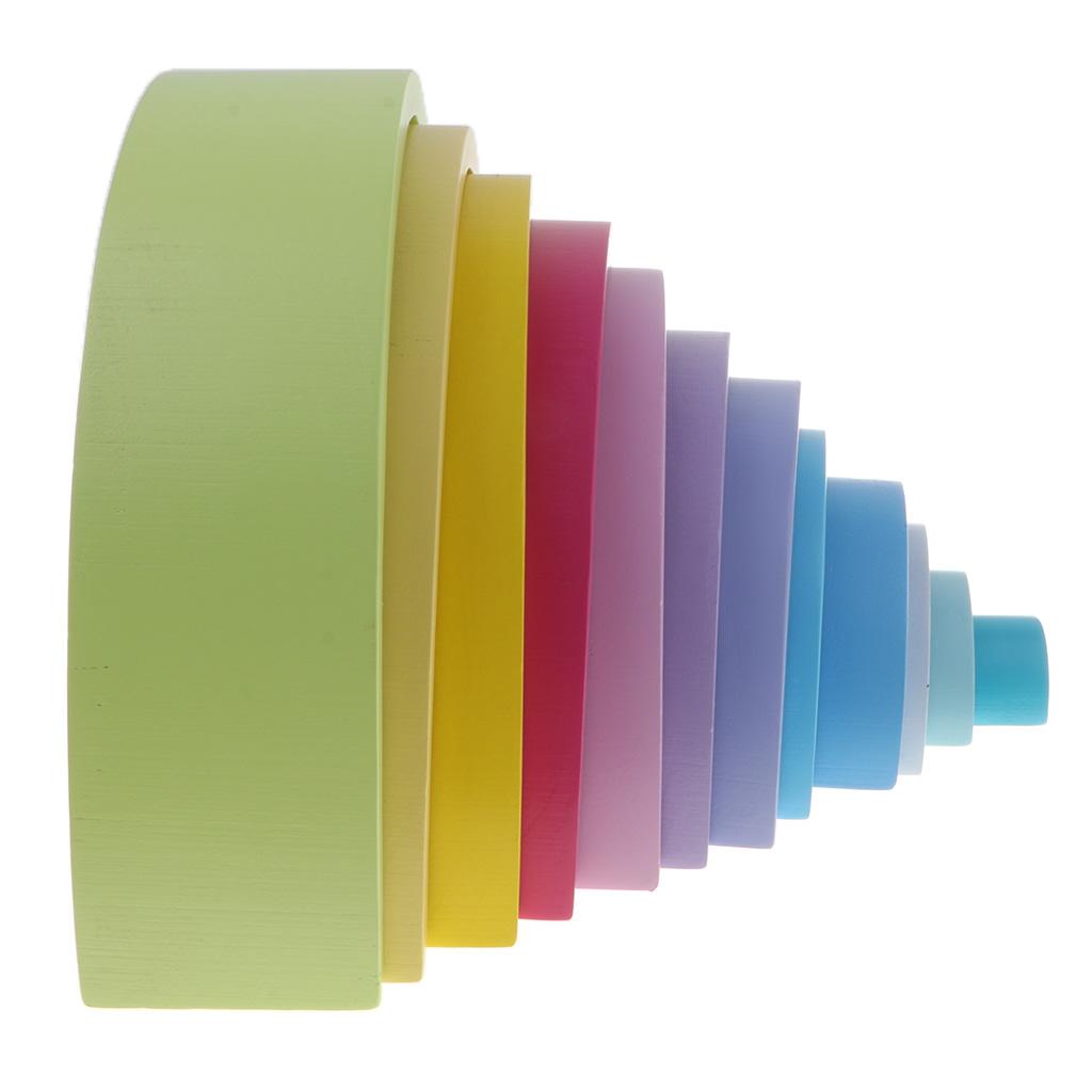 Baby Toddler Montessori Toys - Wooden 12 Colors Macaron Color Stacking Blocks