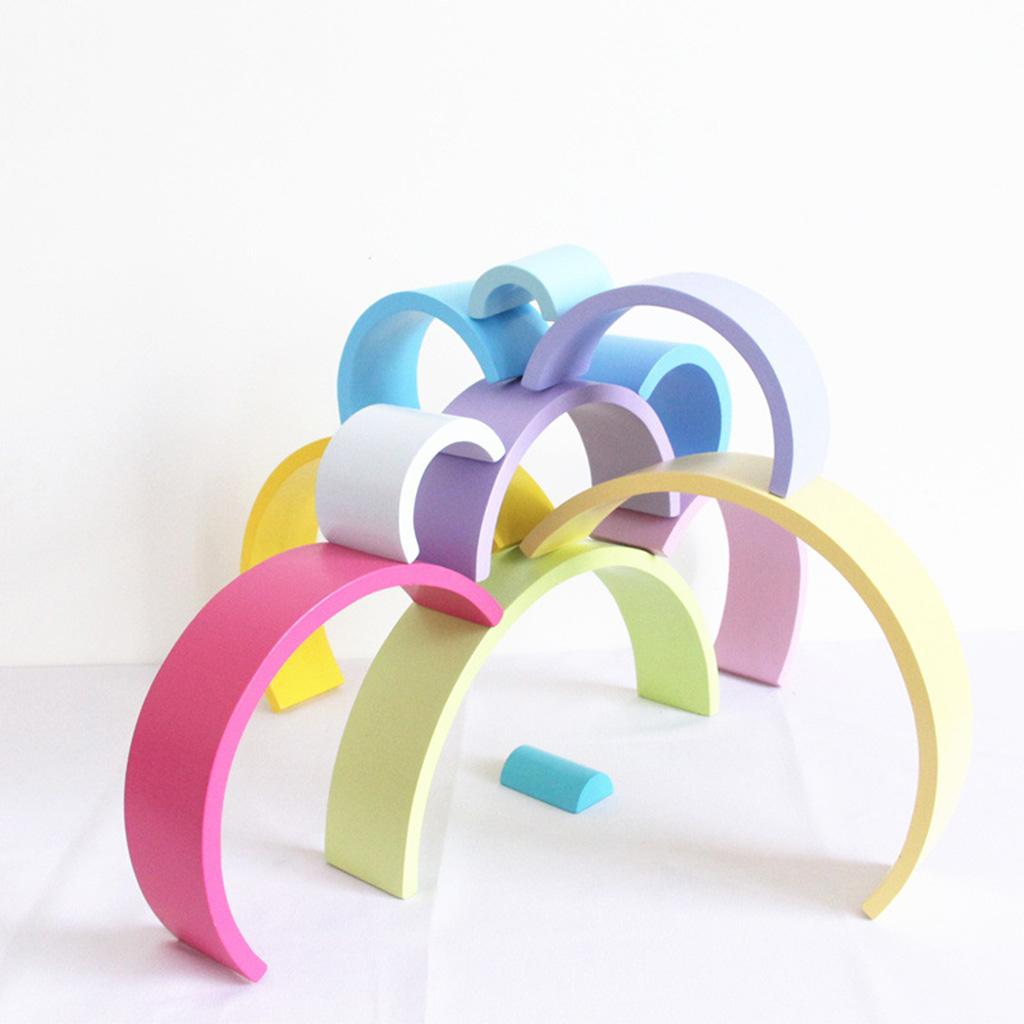 Kids Wooden Montessori Toys - Macaron Color Stacking Blocks Early Learning Toys