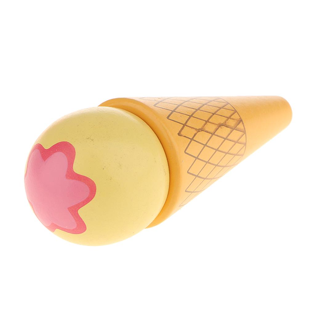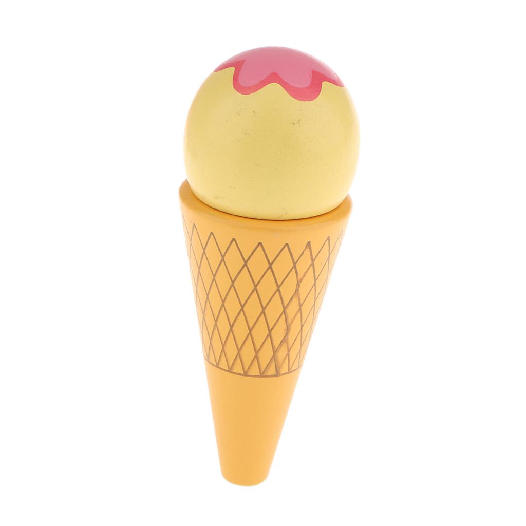 Kitchen Food Play Toy Wooden Magnetic Decorative Ice Cream Cone Kid Yellow