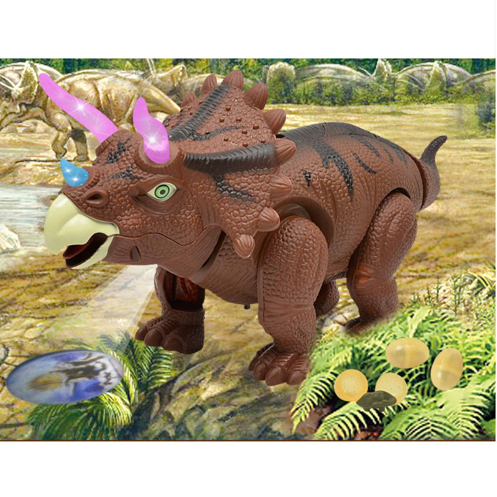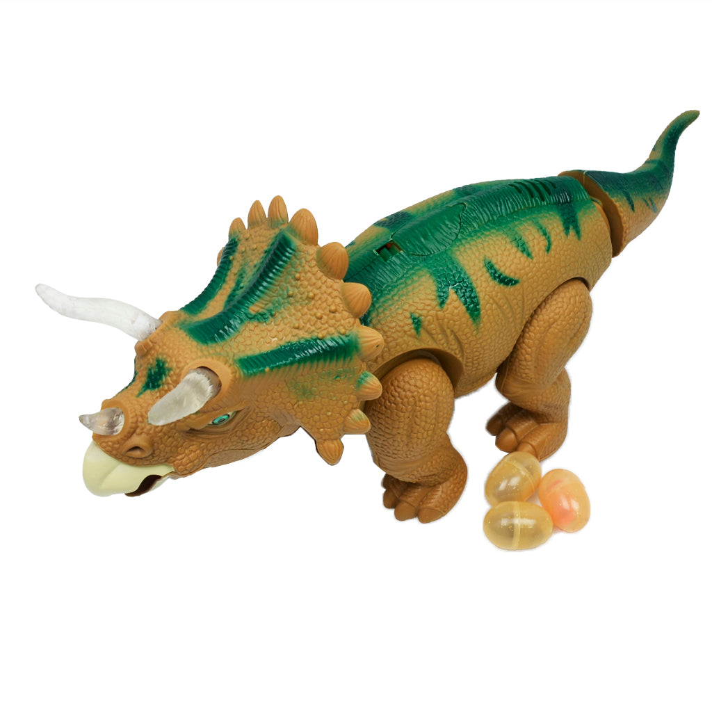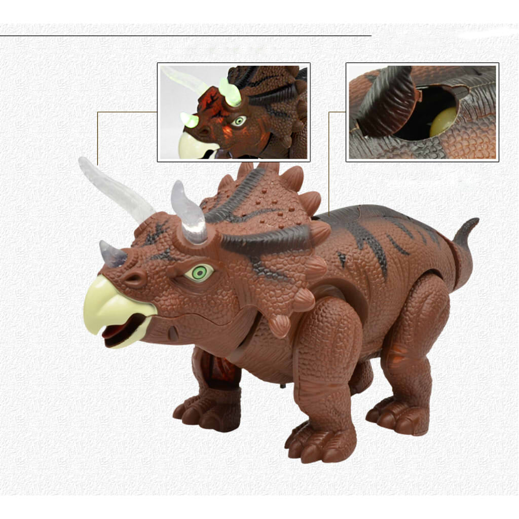 Walking & Laying eggs triceratops dinosaur toy animal figure with realistic sounds & lights, real movement, lay eggs.