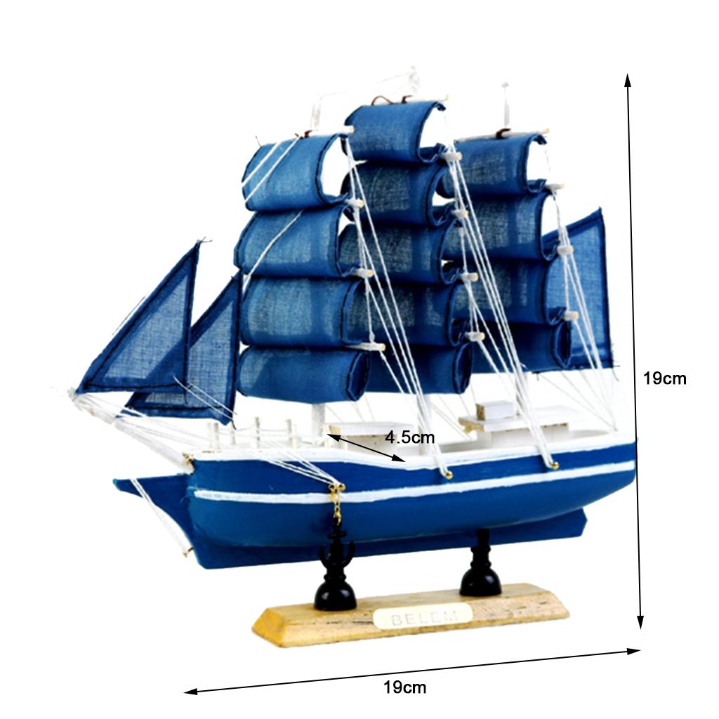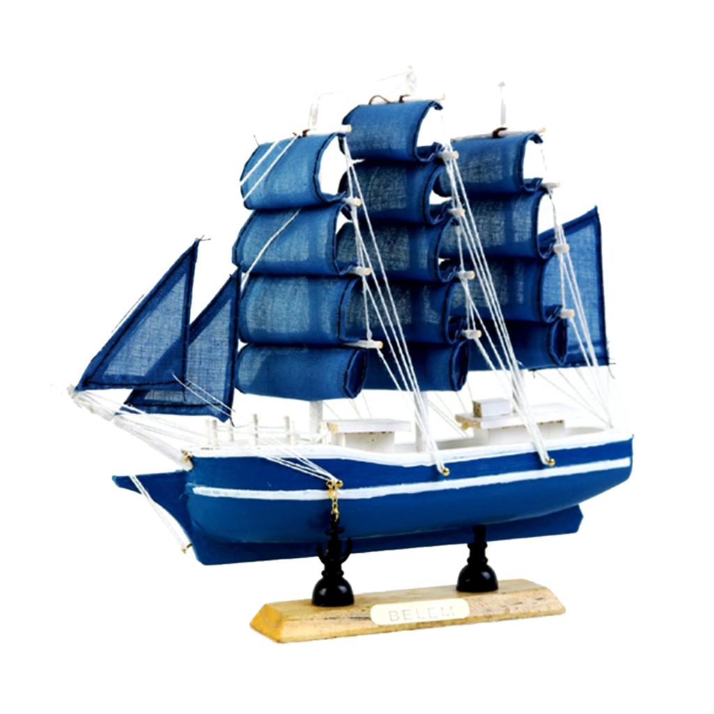 Mediterranean Style Handmade Wooden Sailboat Model Decoration Boat Gift C