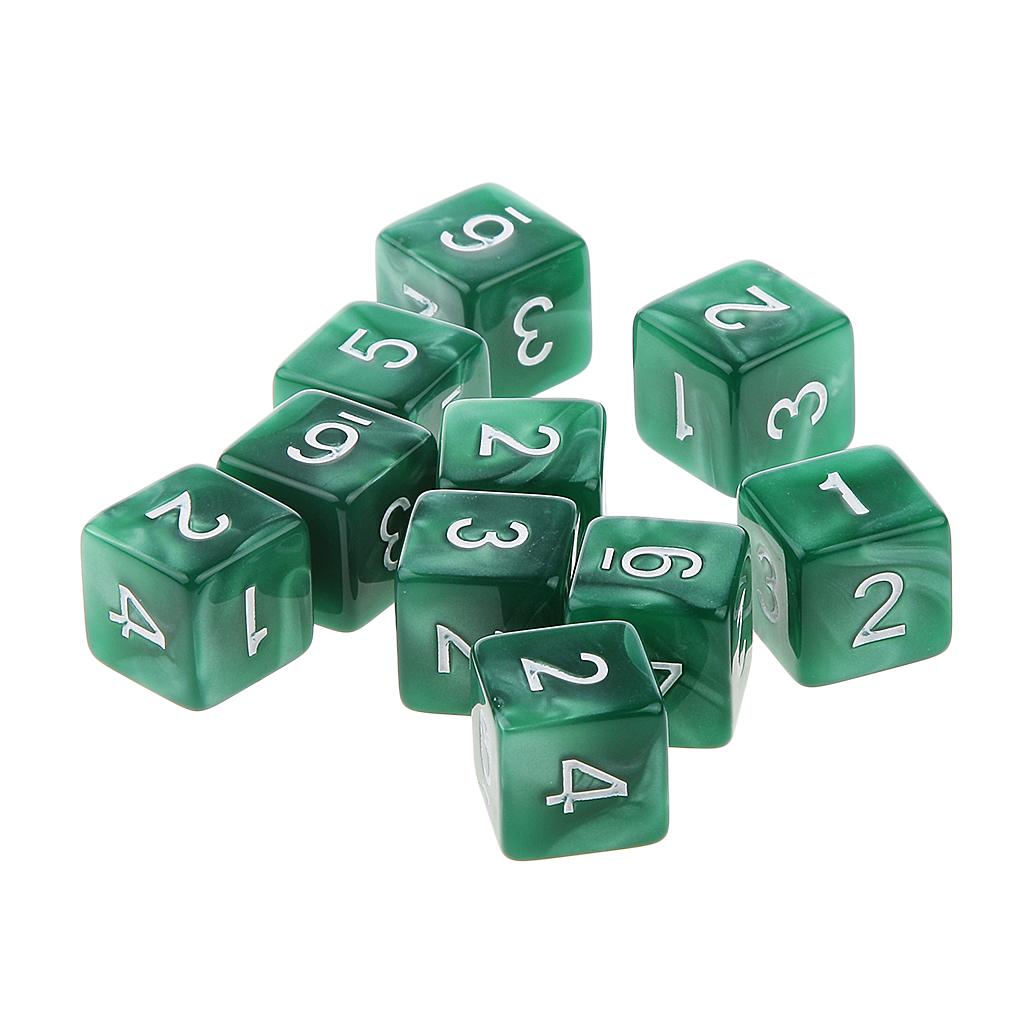 Pack of 10pcs Pearl Green D6 Six Sided Game Dice D&D TRPG Games Party Supplies Toys