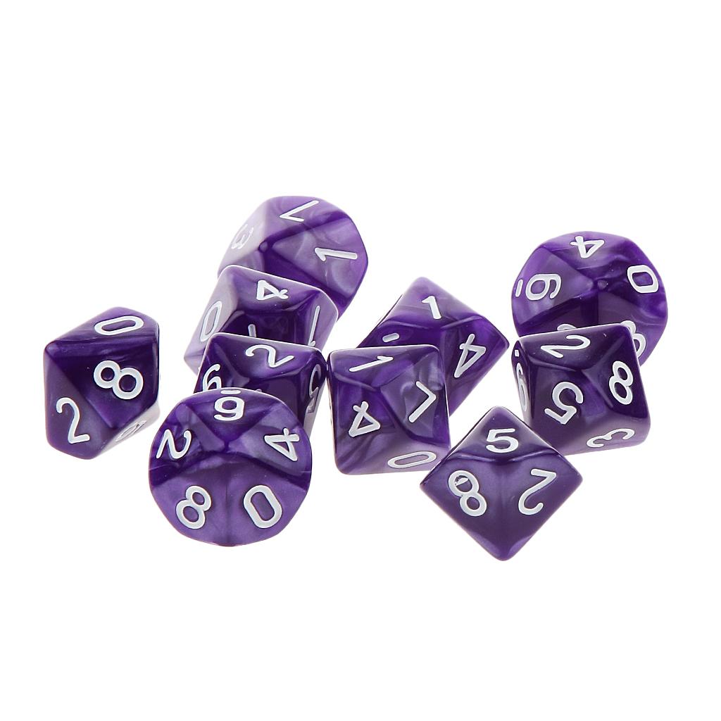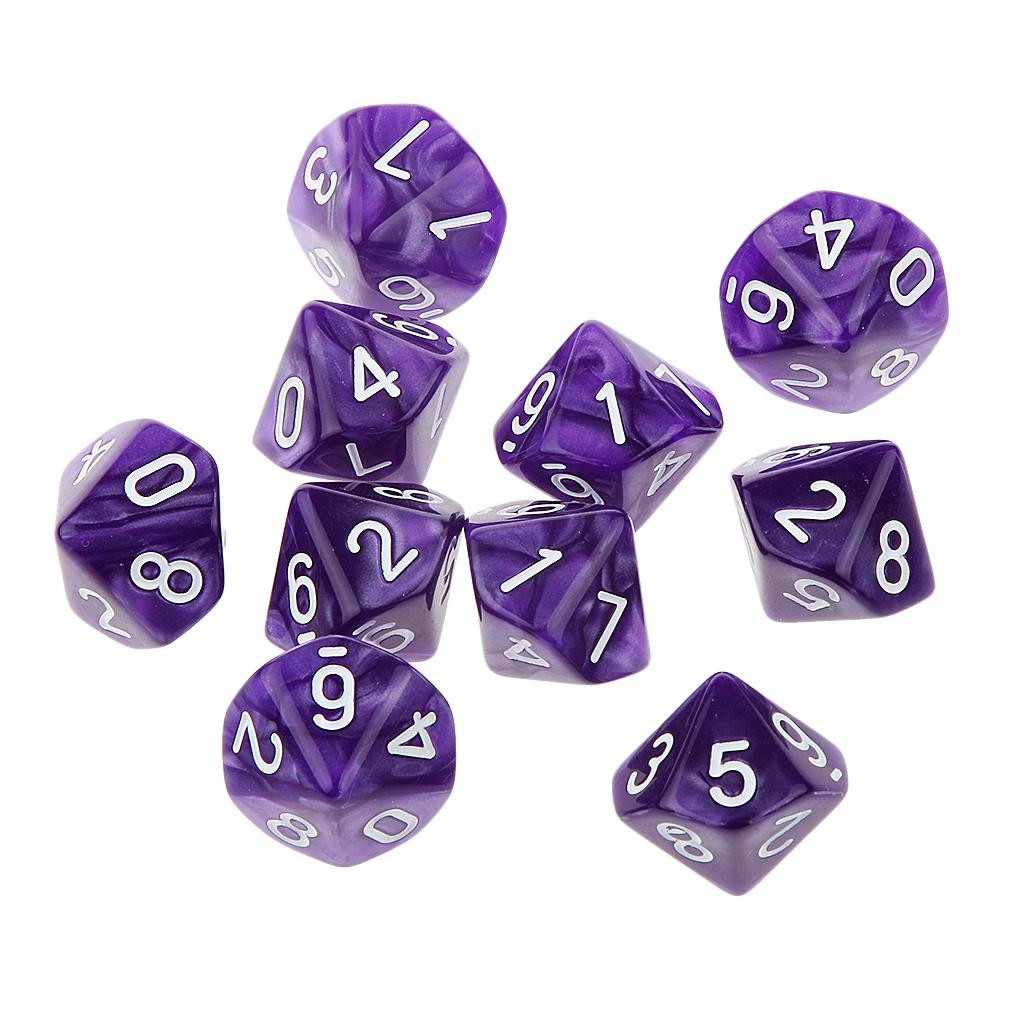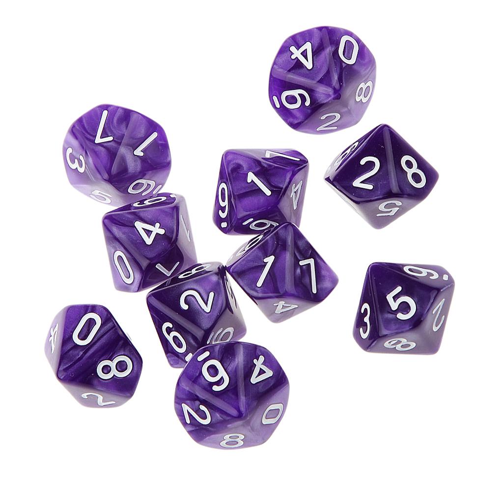 Pack of 10pcs Pearl Purple D10 Ten Sided Game Dice D&D TRPG Games Party Supplies Toys