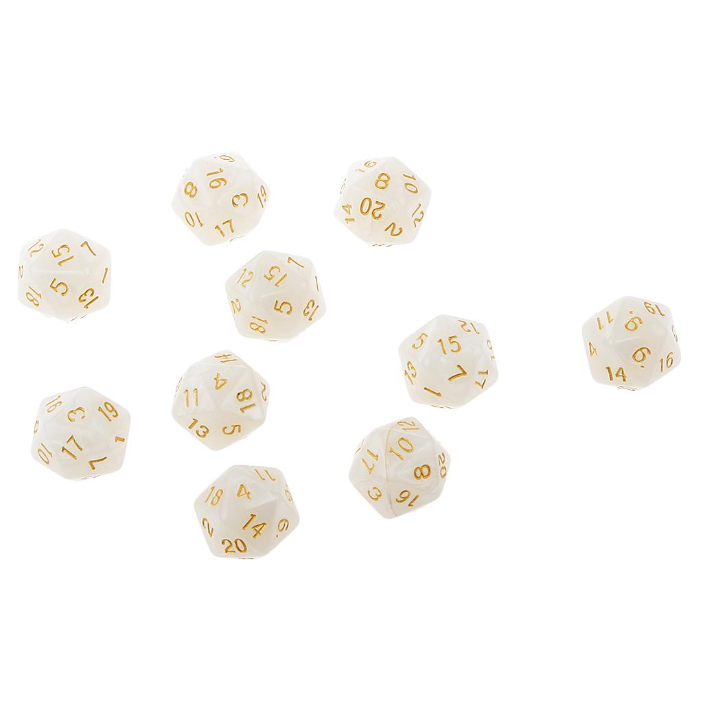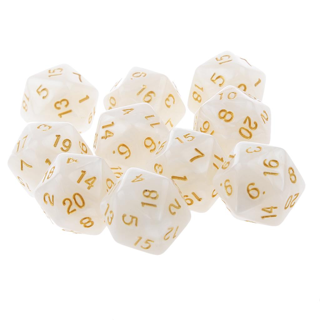 Pack of 10pcs Pearl White D20 Twenty Sided Game Dice D&D TRPG Games Party Supplies