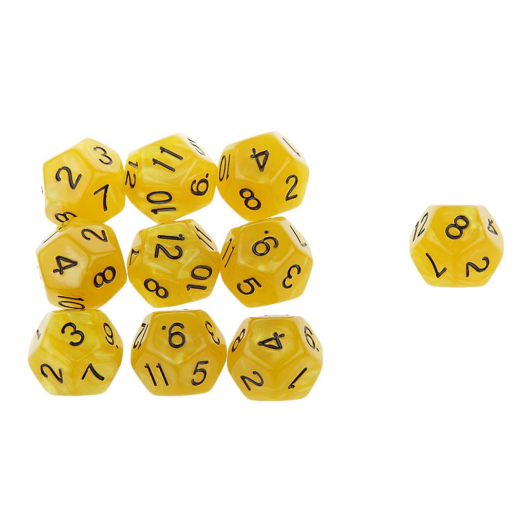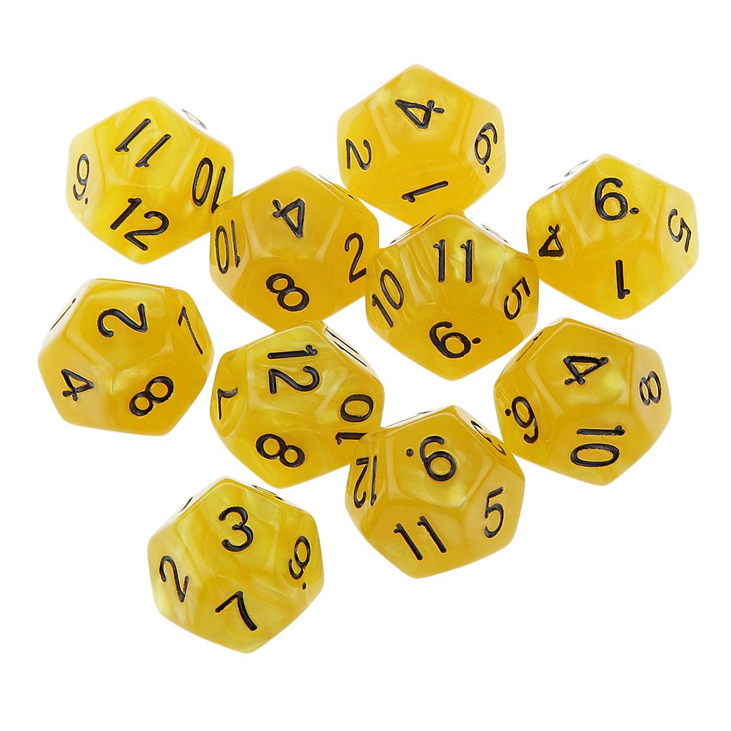 Pack of 10pcs Pearl Yellow D12 Twelve Sided Game Dice D&D TRPG Games Party Supplies