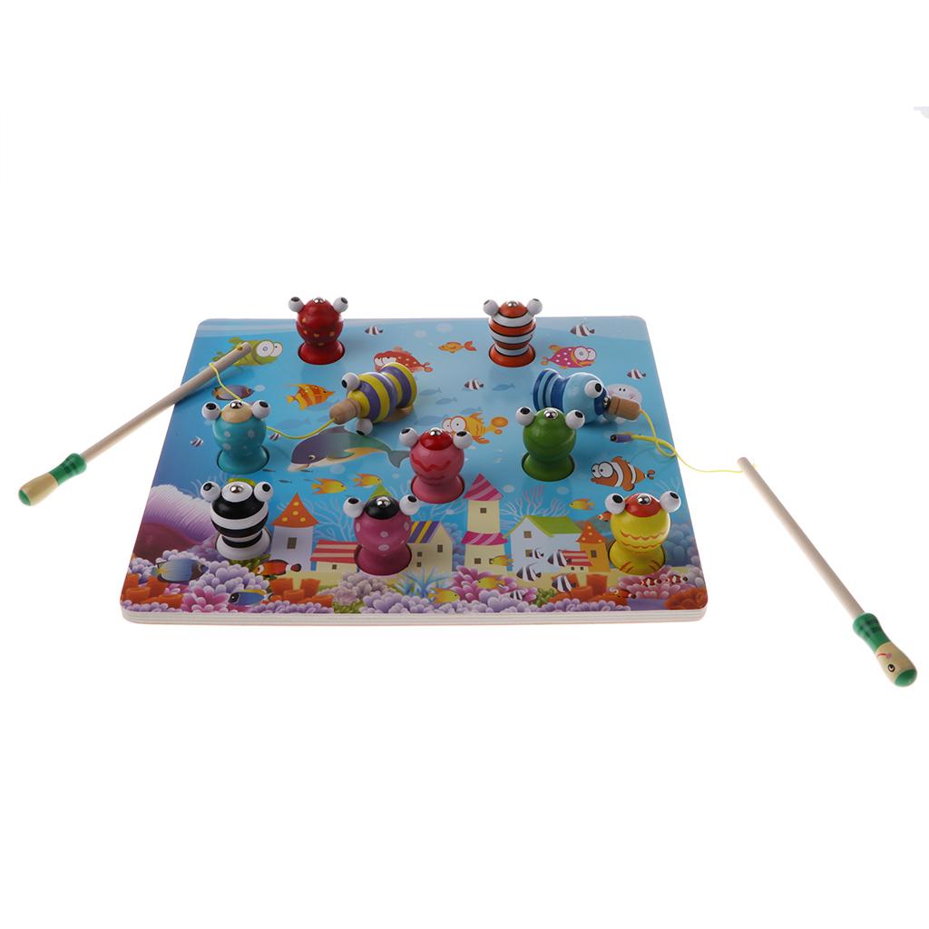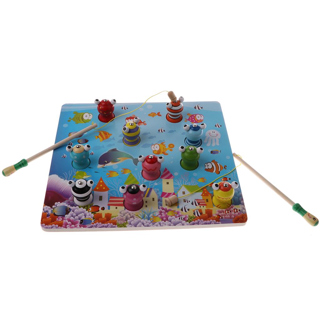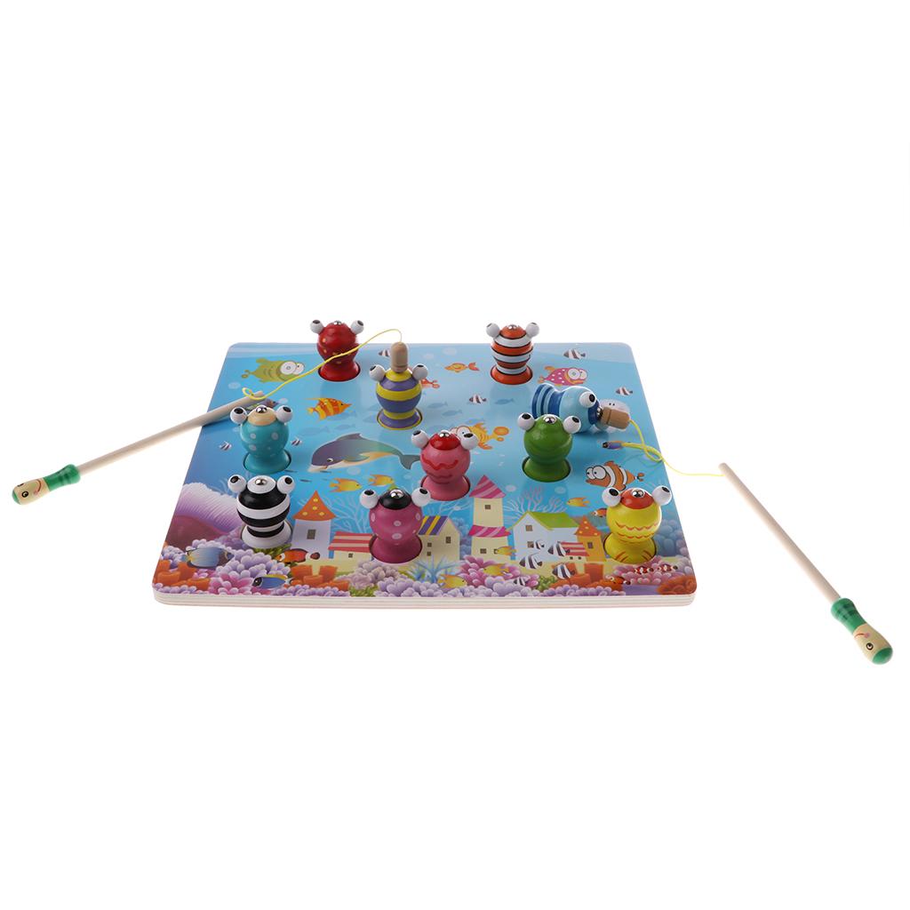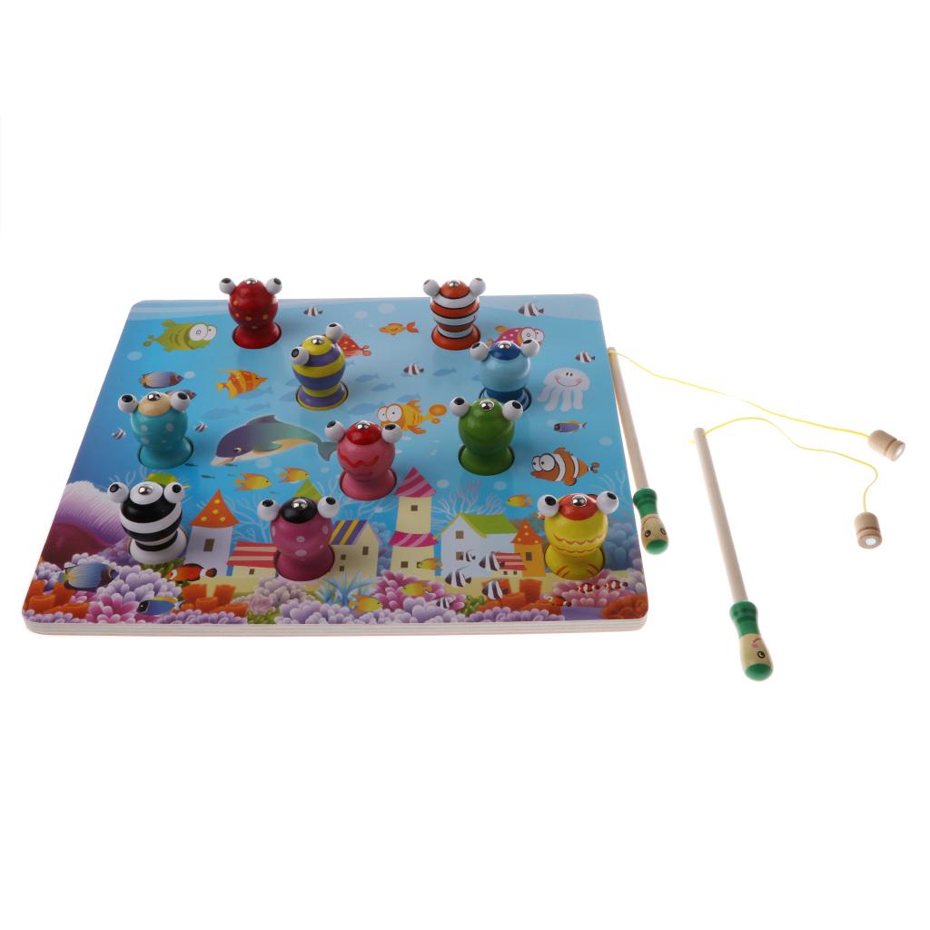 Set of 13 Pieces Toddler Kids Wooden Magnetic Fishing Frog Bath Toy Set Pretend Play
