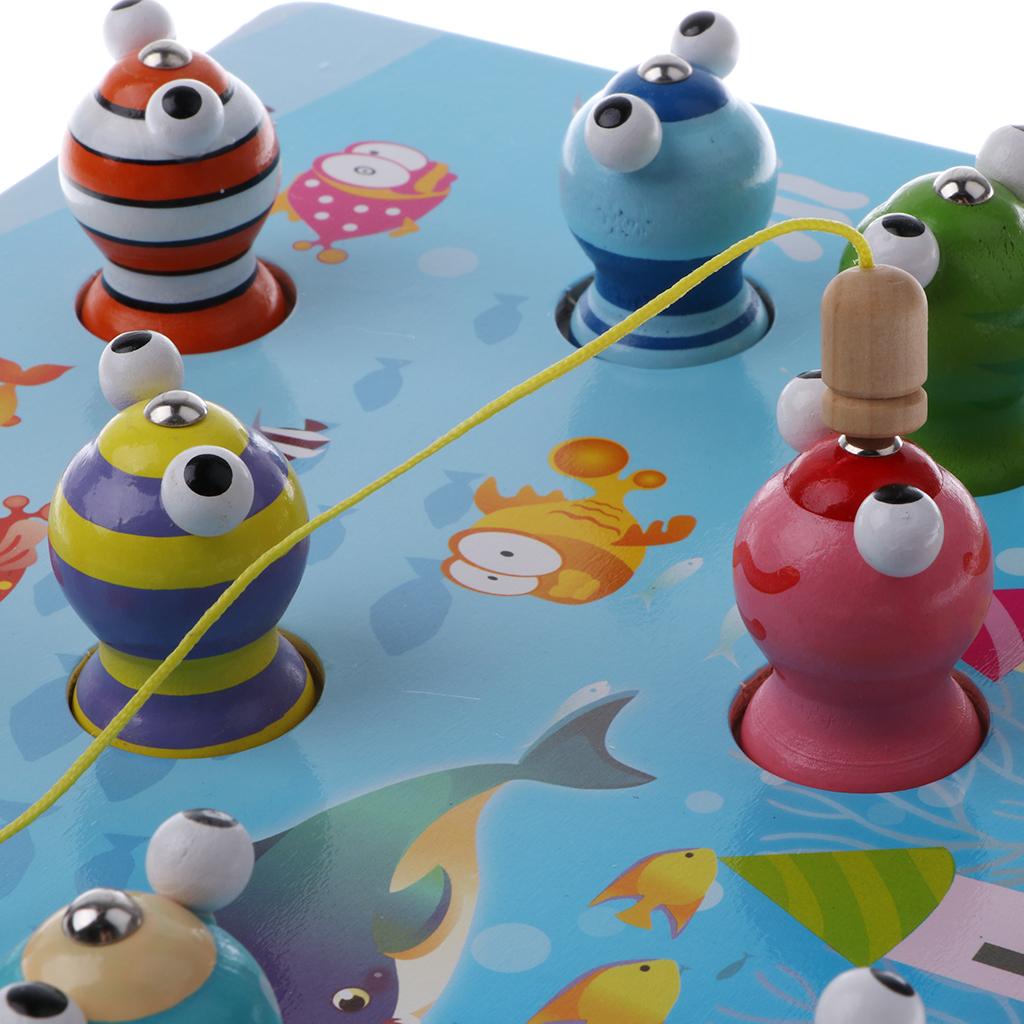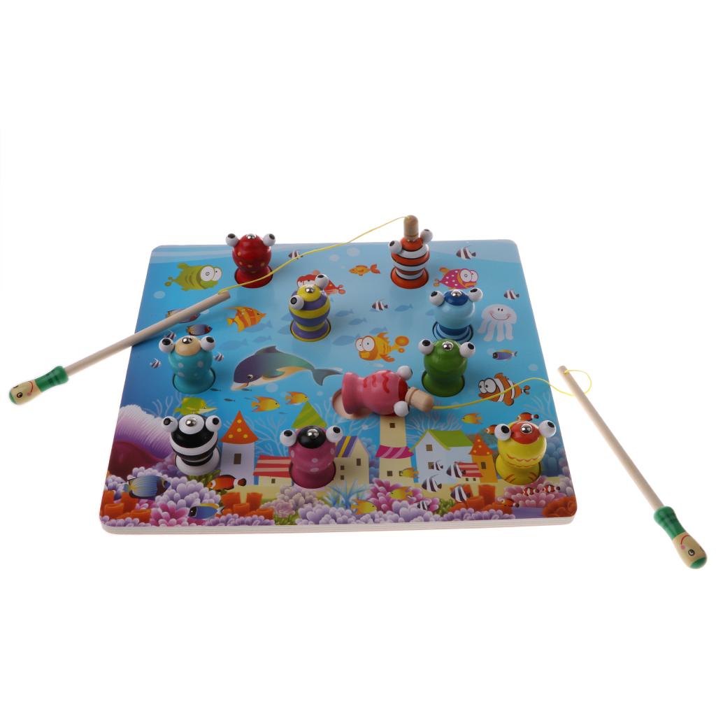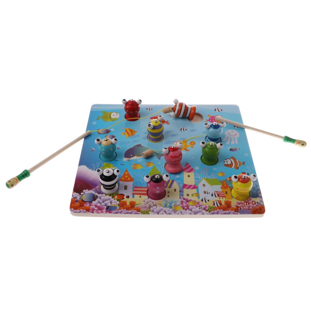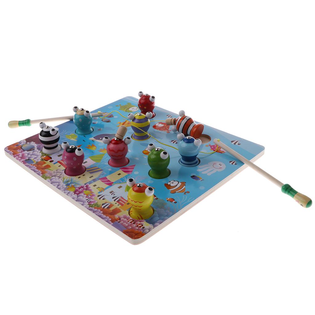 Set of 13 Pieces Toddler Kids Wooden Magnetic Fishing Frog Bath Toy Set Pretend Play