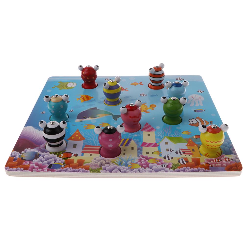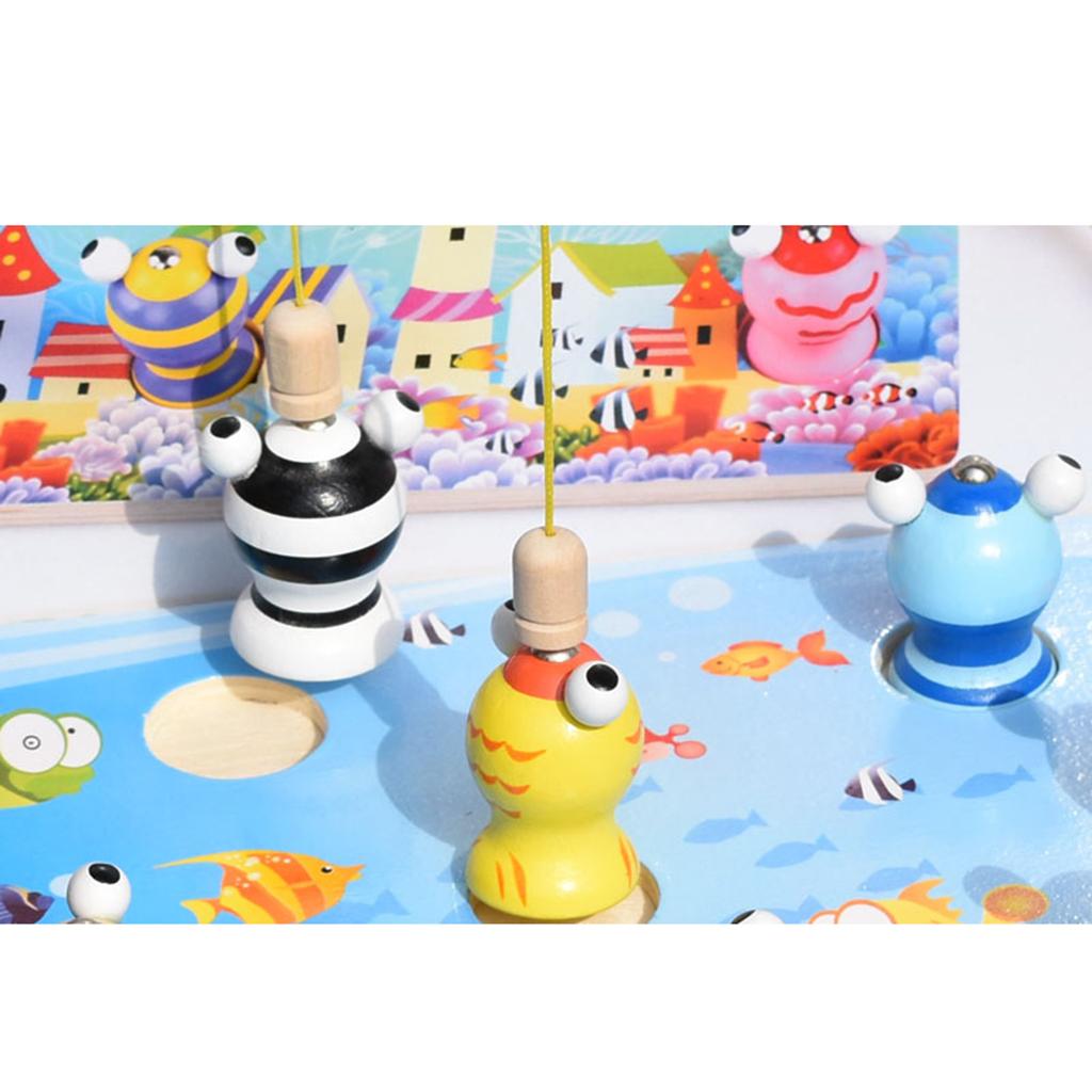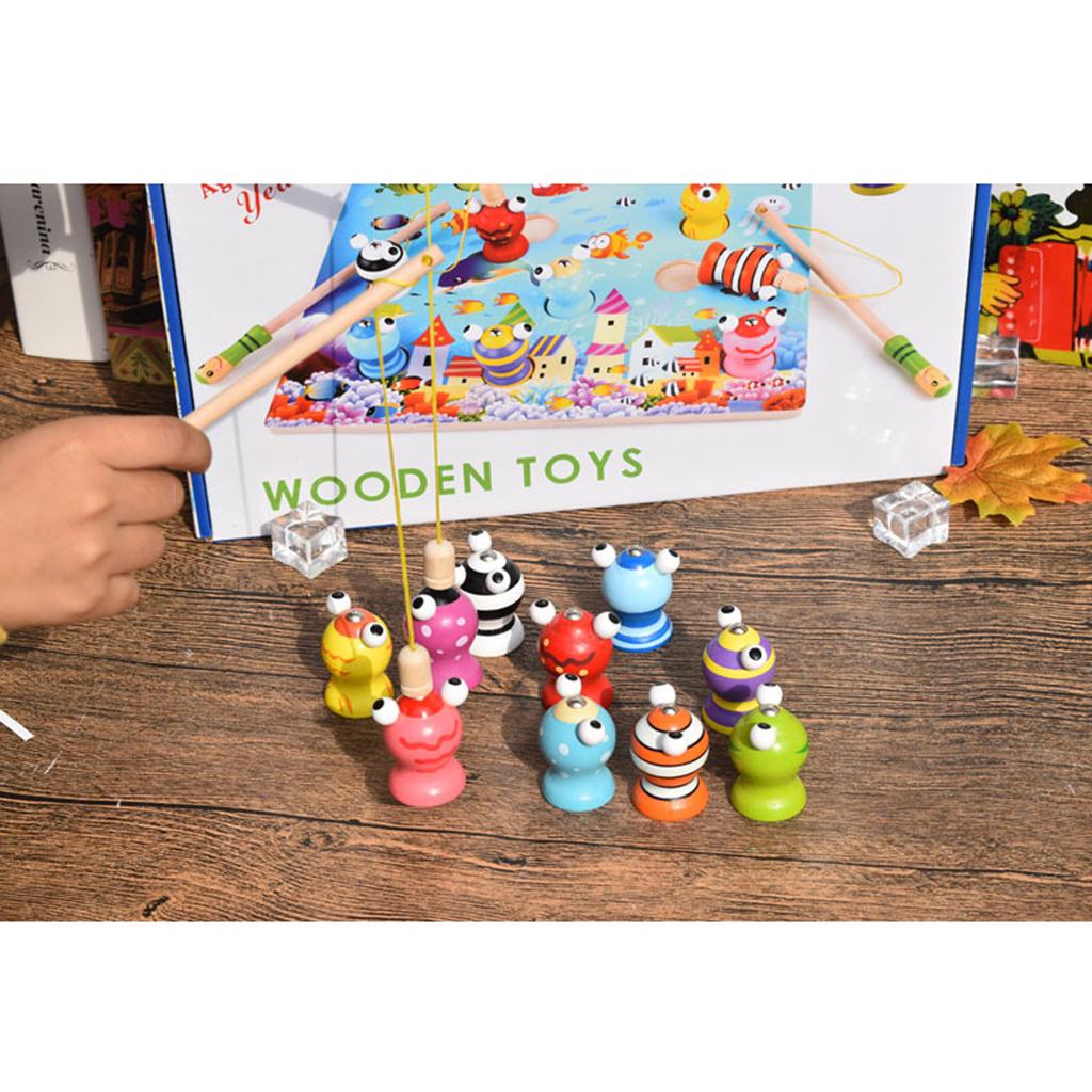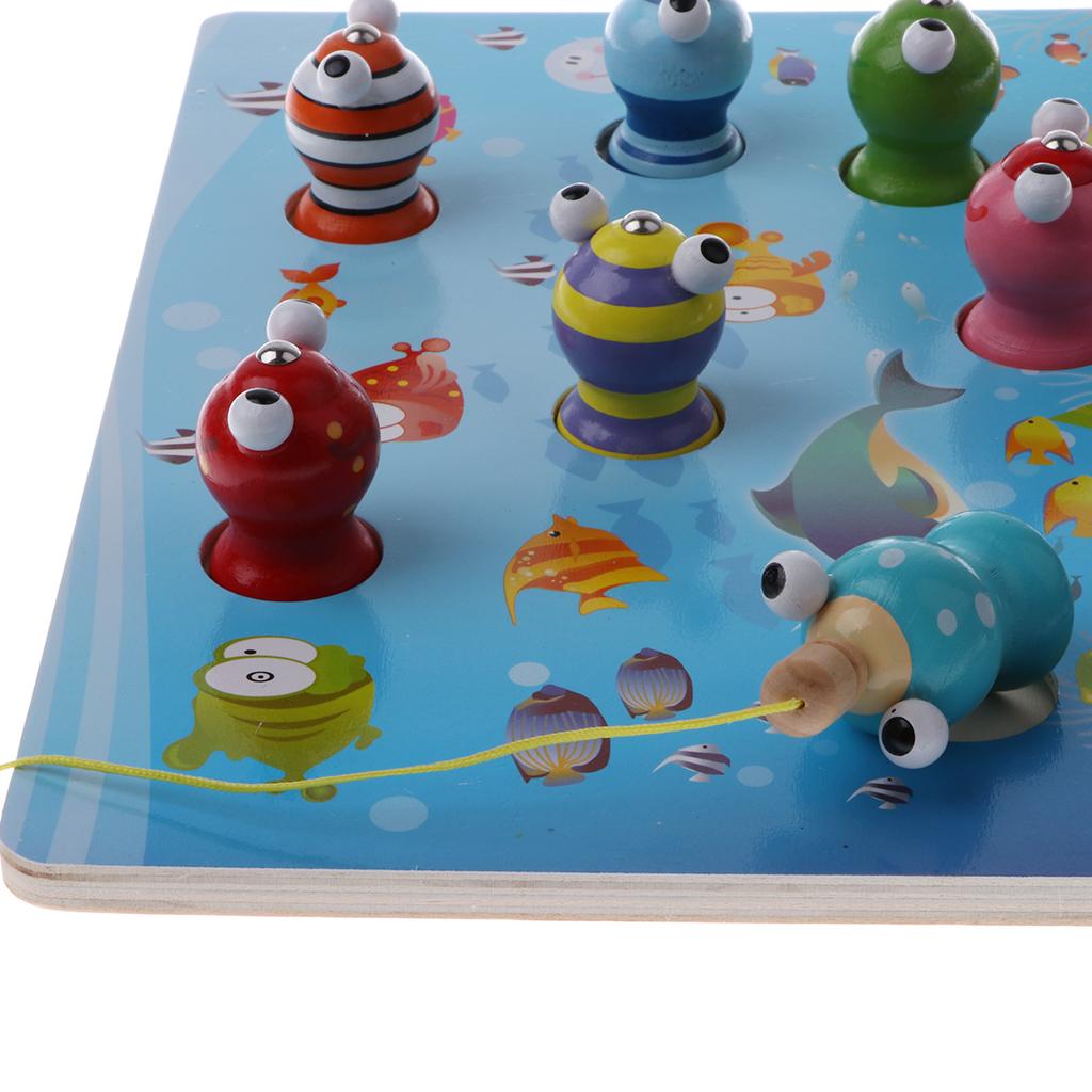 Set of 13 Pieces Toddler Kids Wooden Magnetic Fishing Frog Bath Toy Set Pretend Play