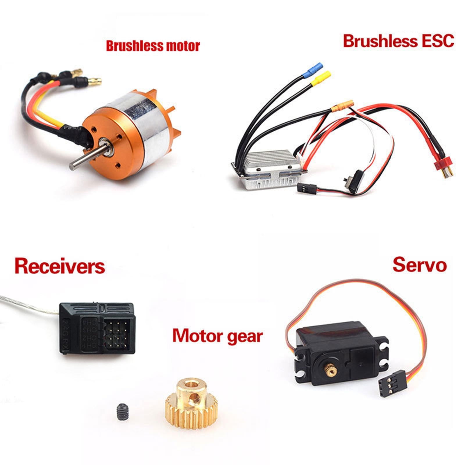 Full set of brushless upgrade accessories: brushless motor + ESC + servo + motor gear + receiver.