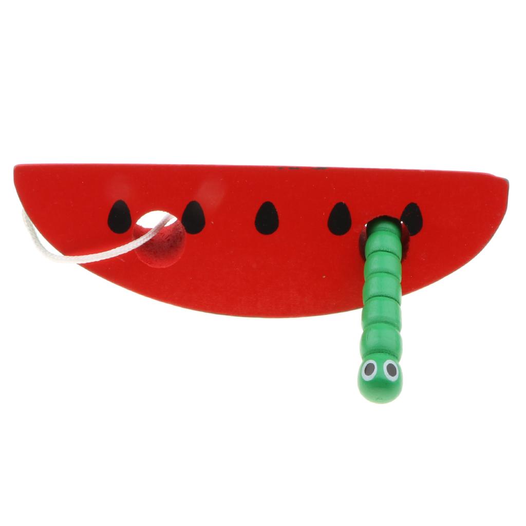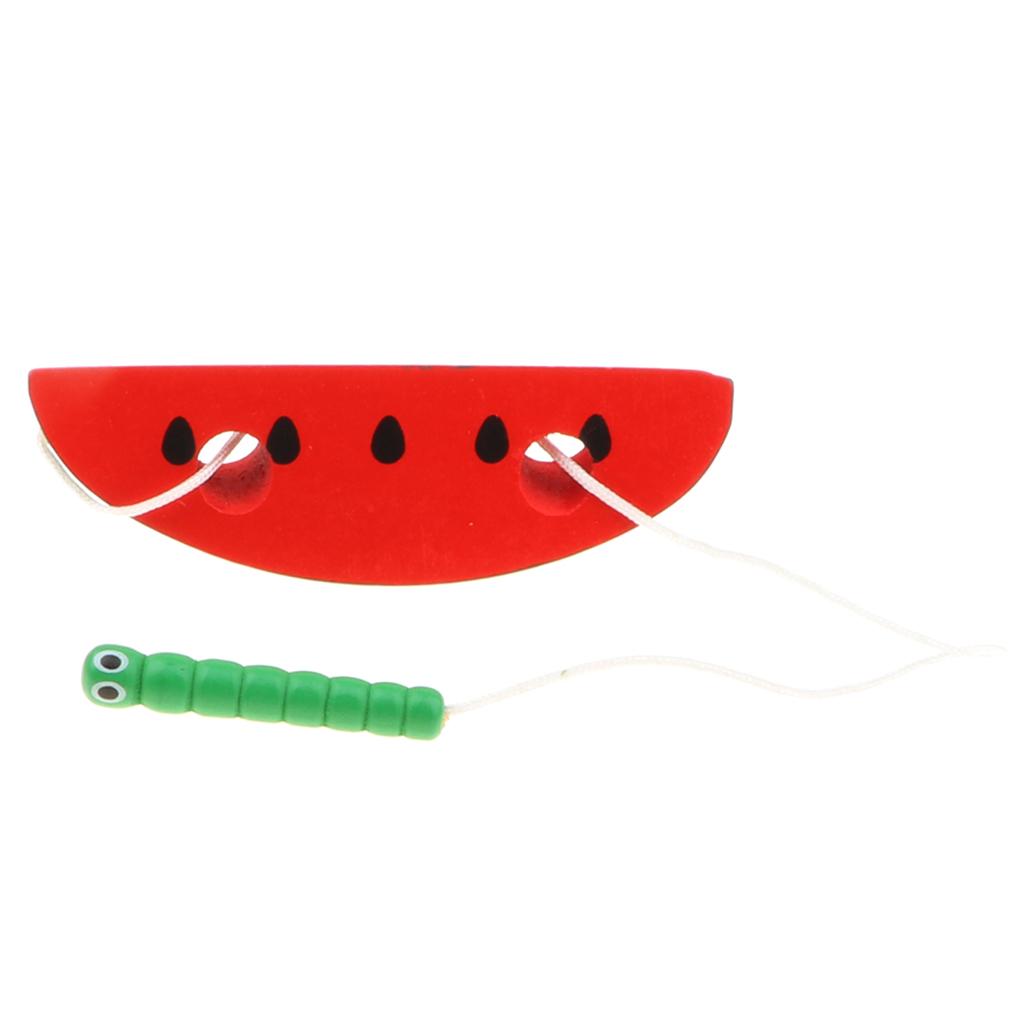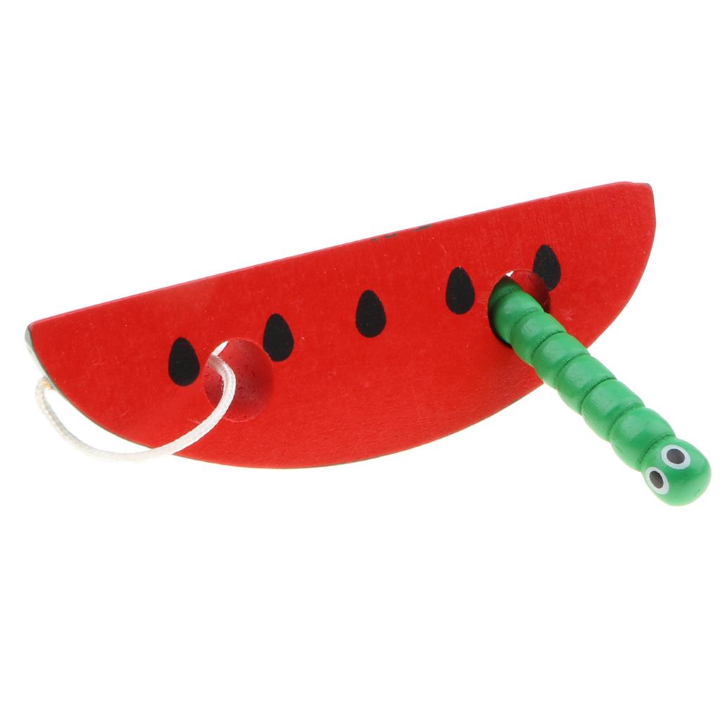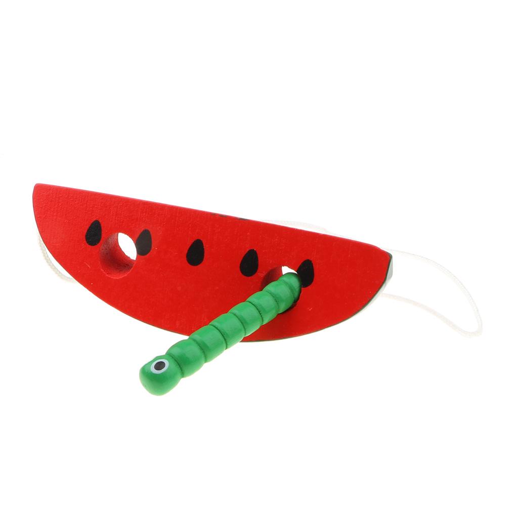 Wooden Caterpillar Eating Watermelon Lacing & Threading Game for Kids Educational Toy