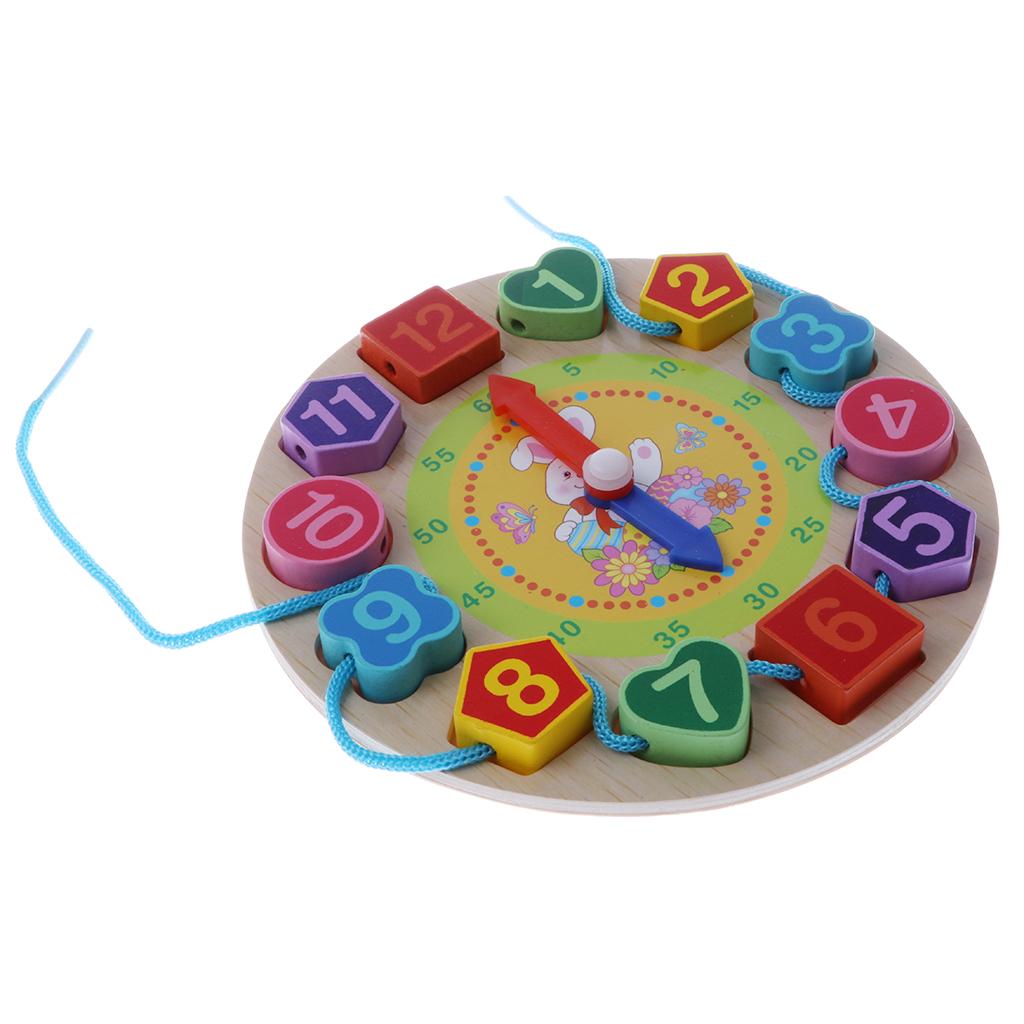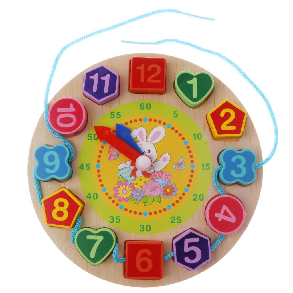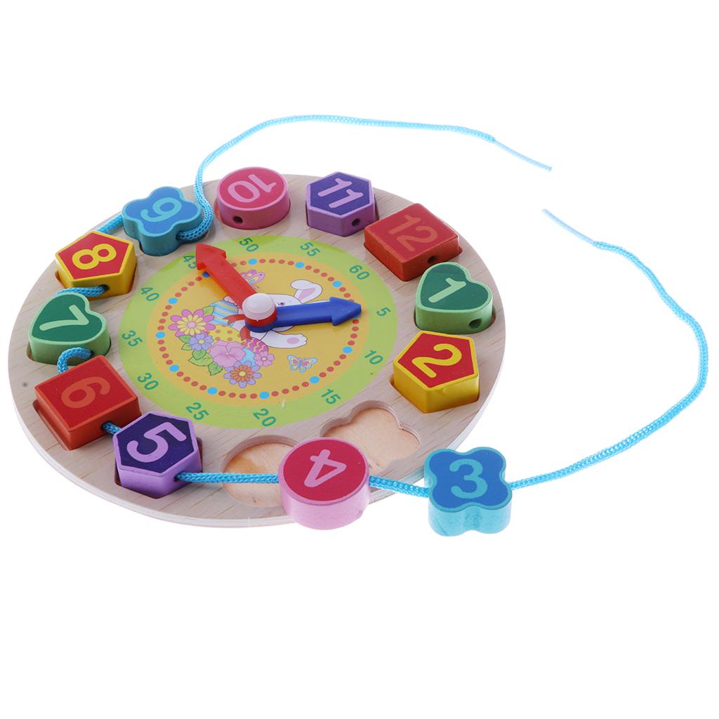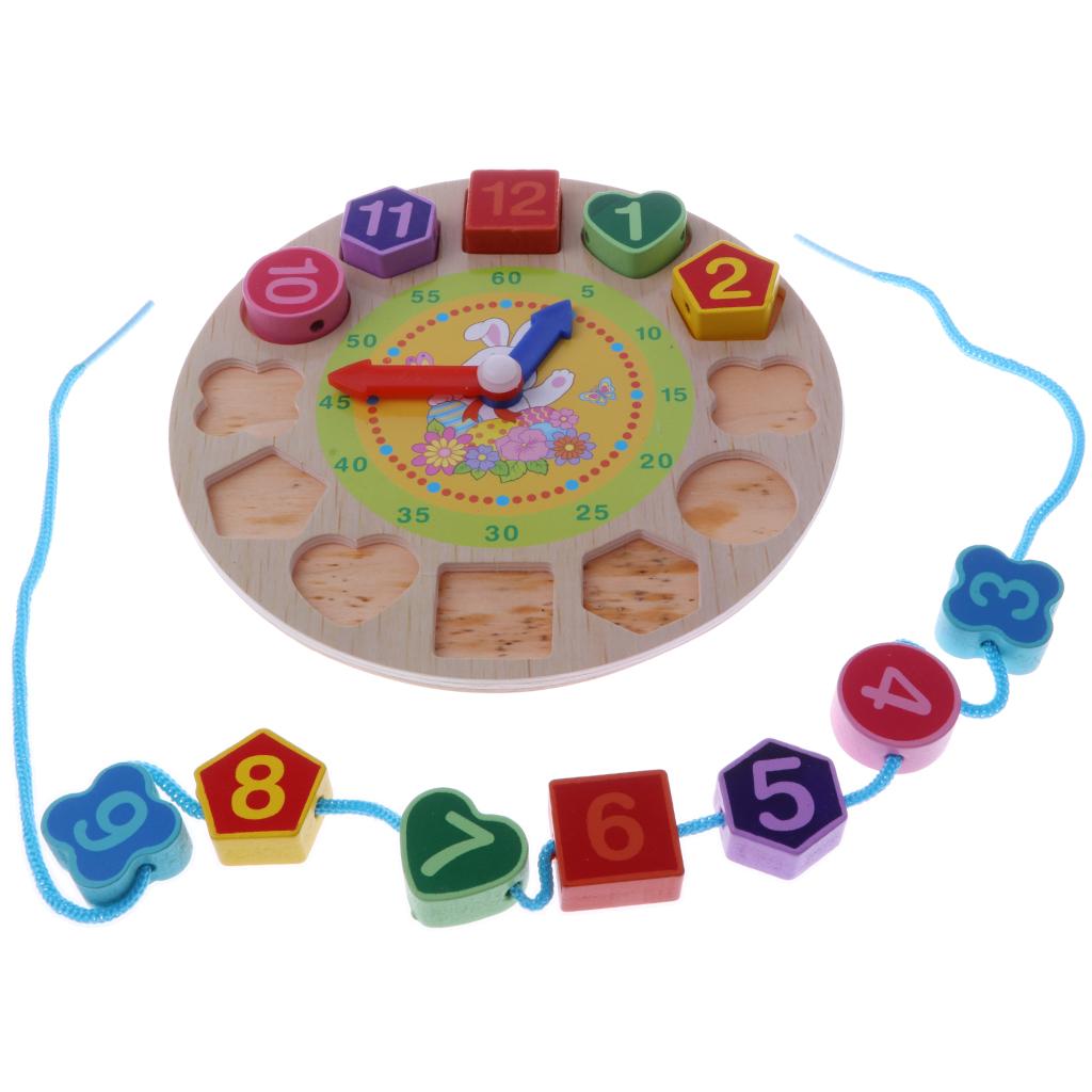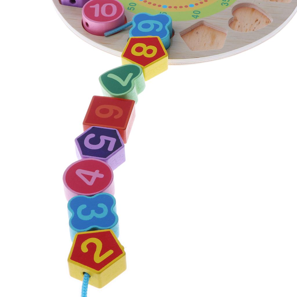 Colorful Wooden Montessori Toys - Digital Clock Toy Lacing String Beads Game