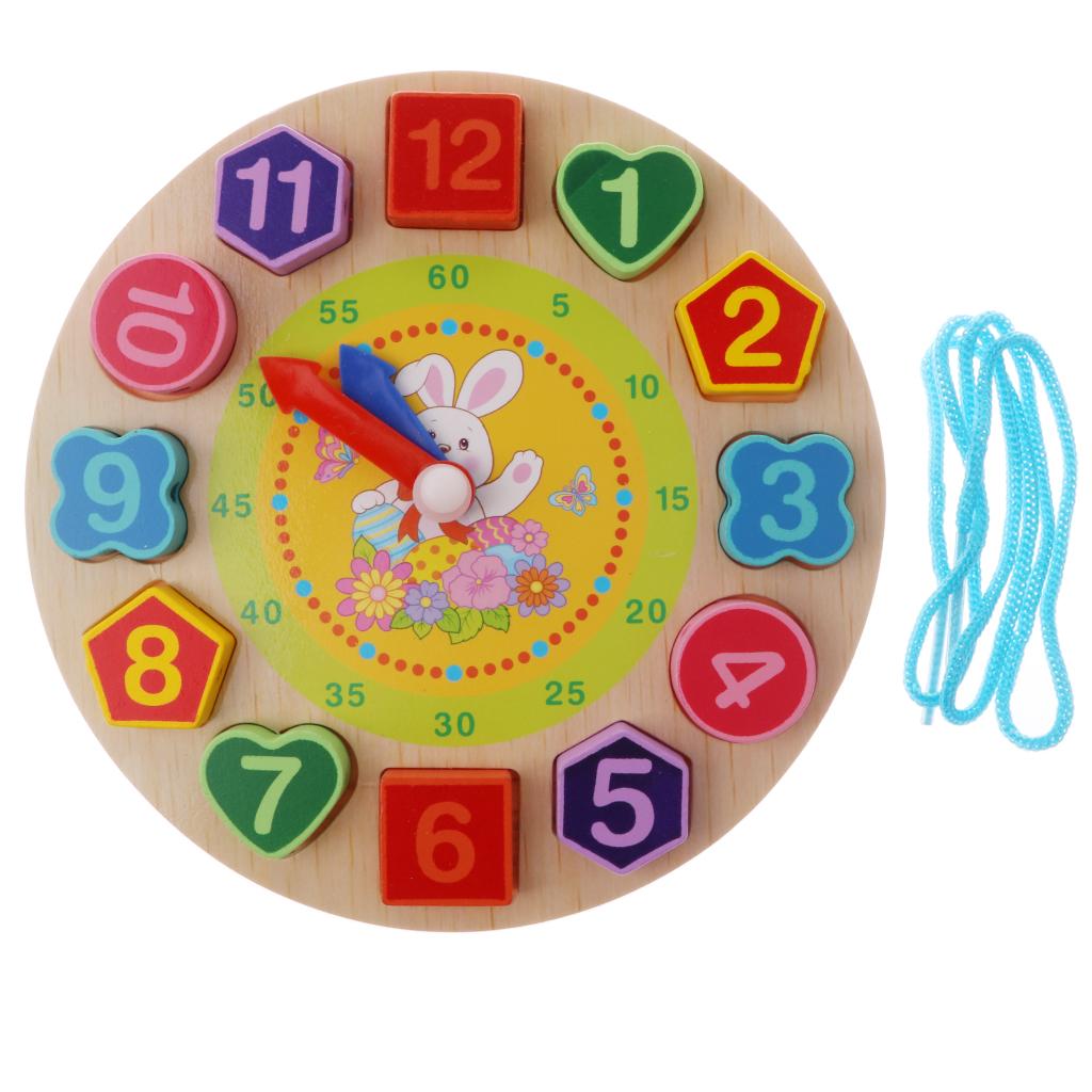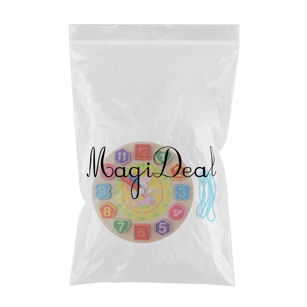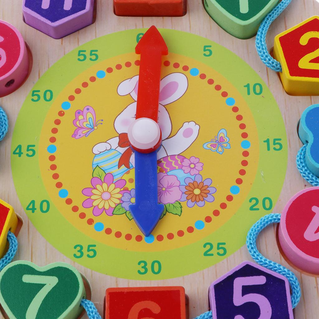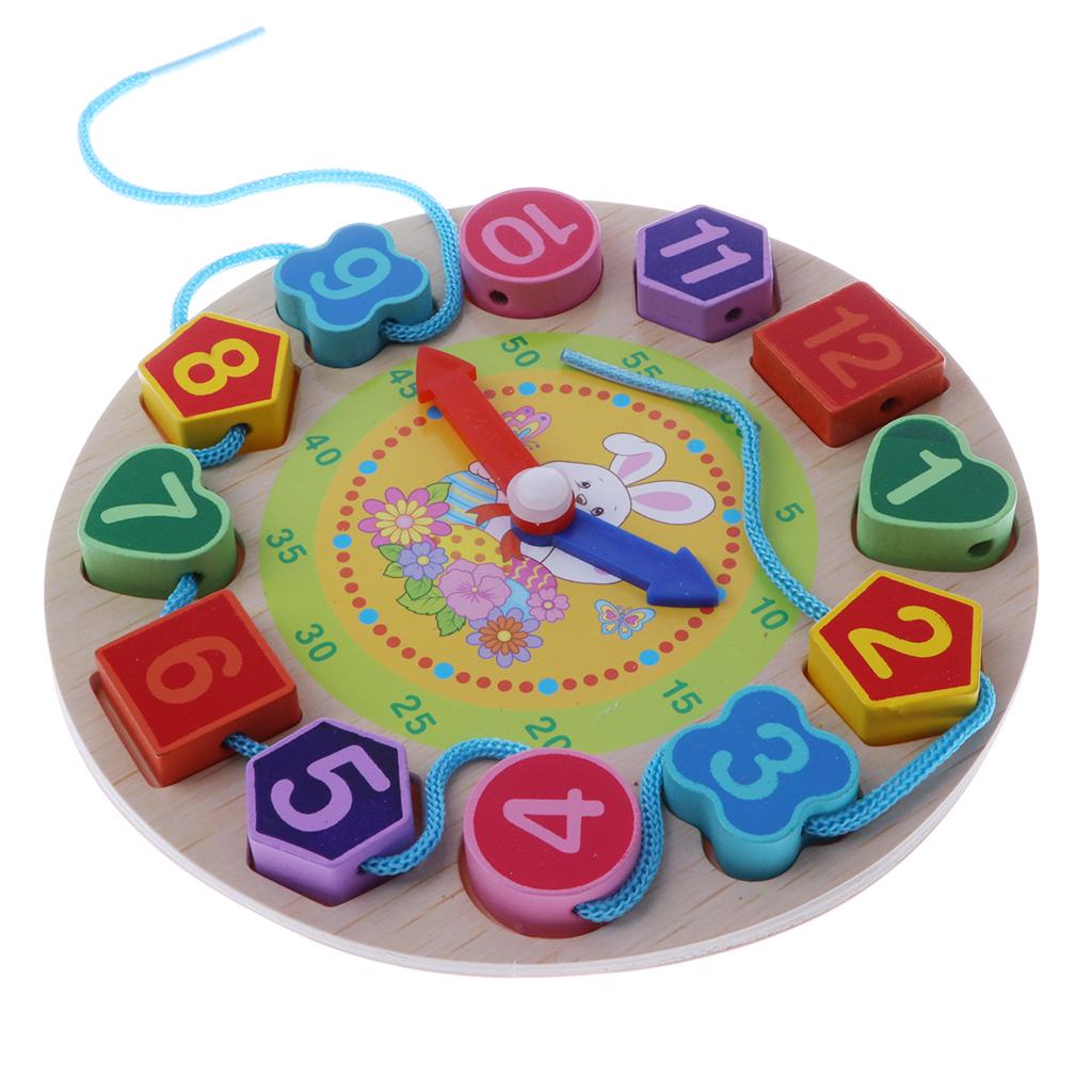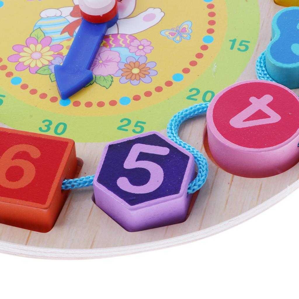 Colorful Wooden Montessori Toys - Digital Clock Toy Lacing String Beads Game