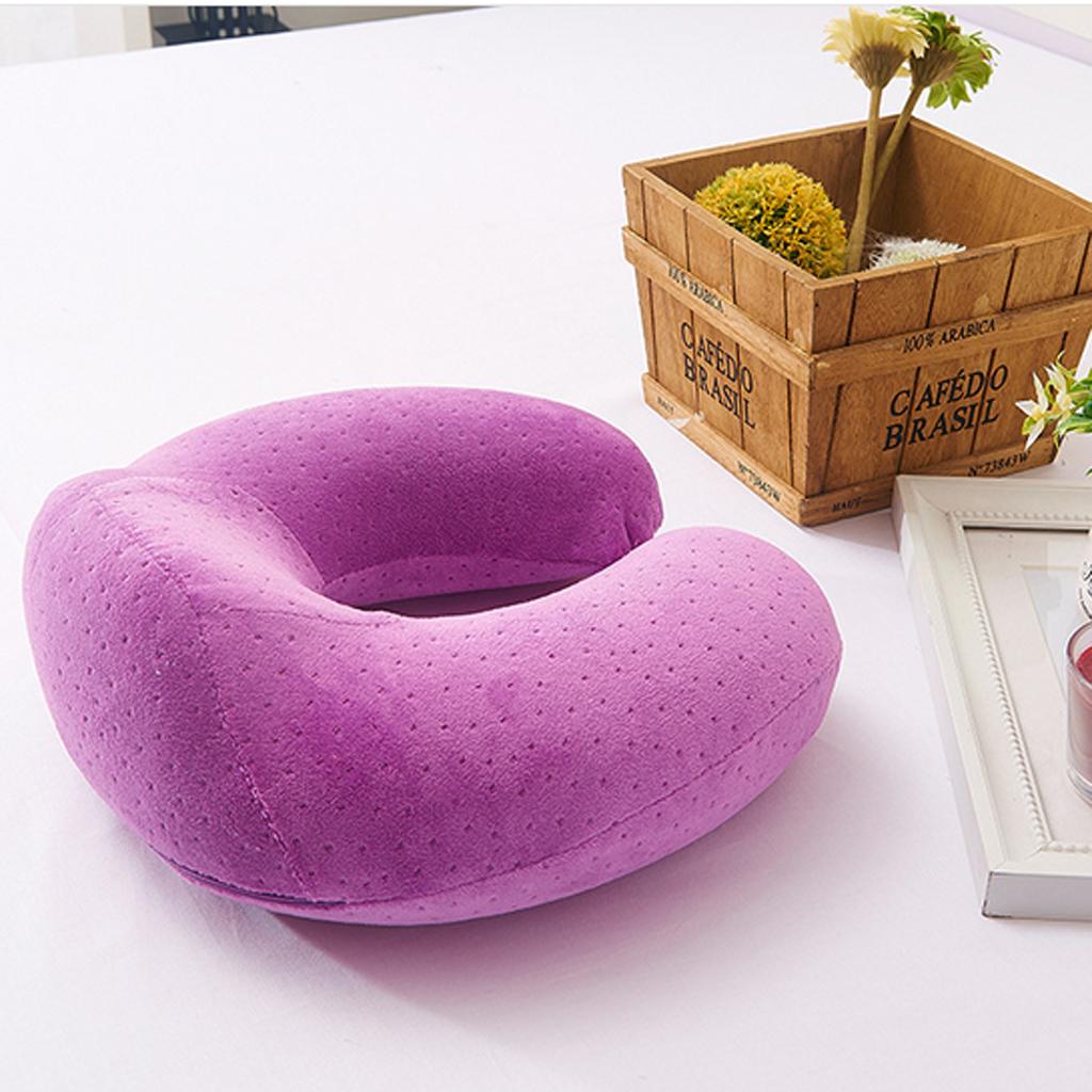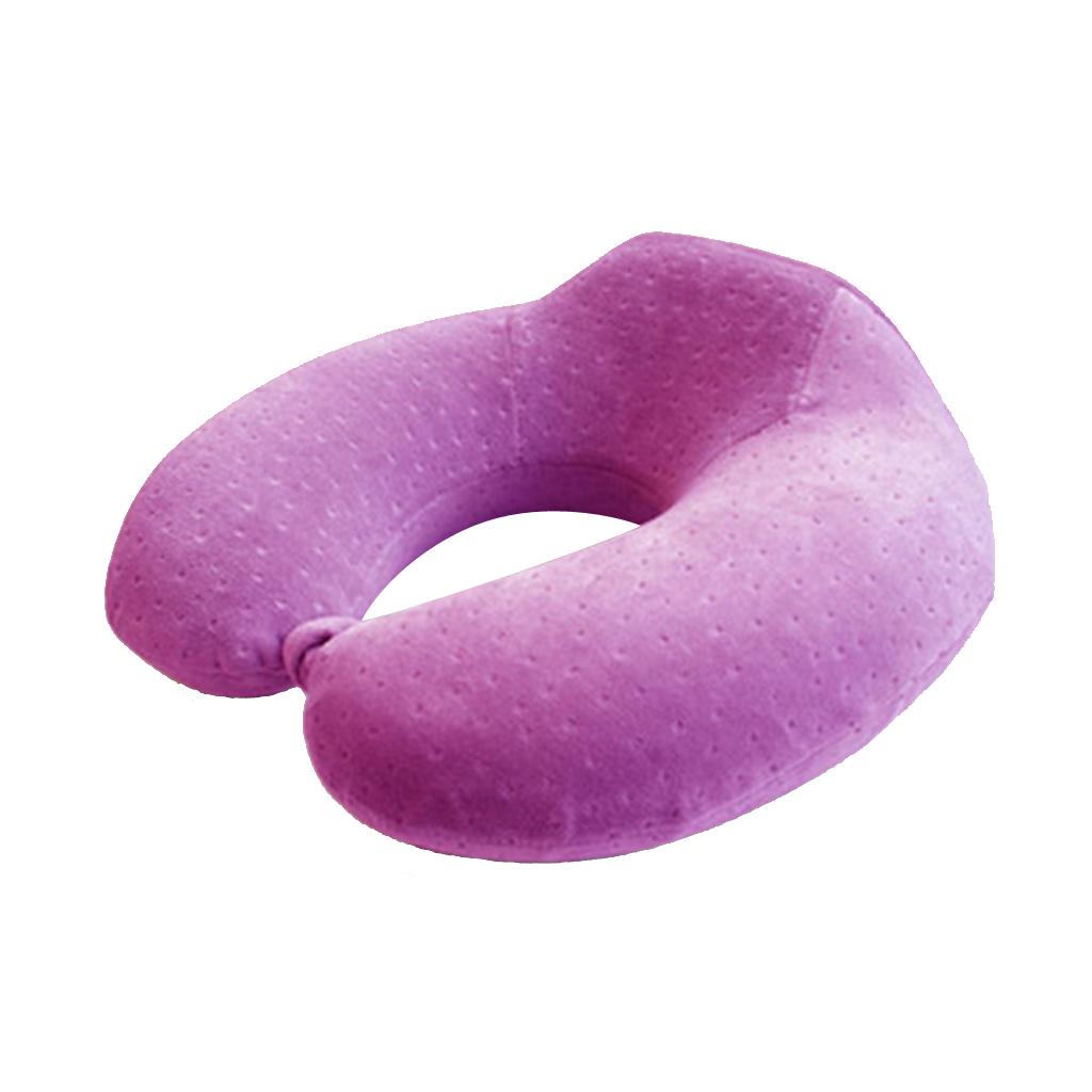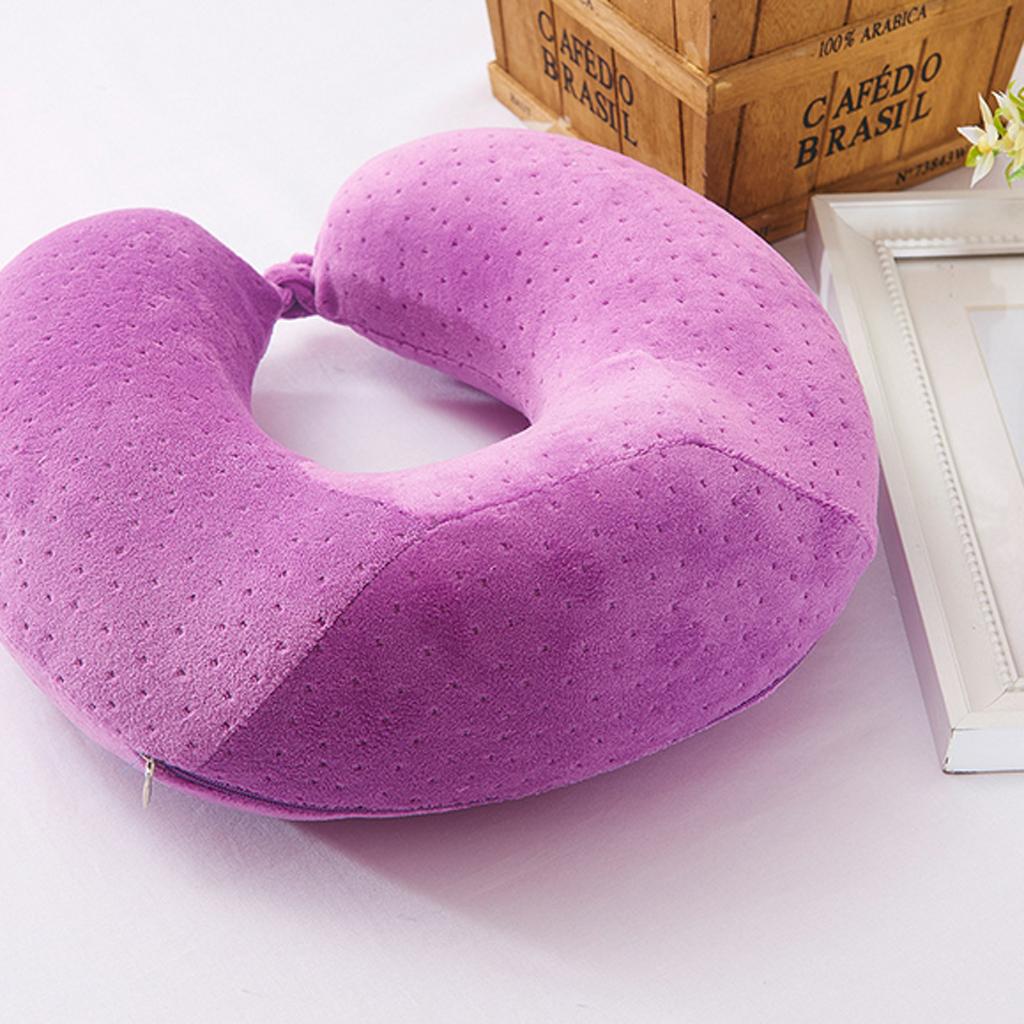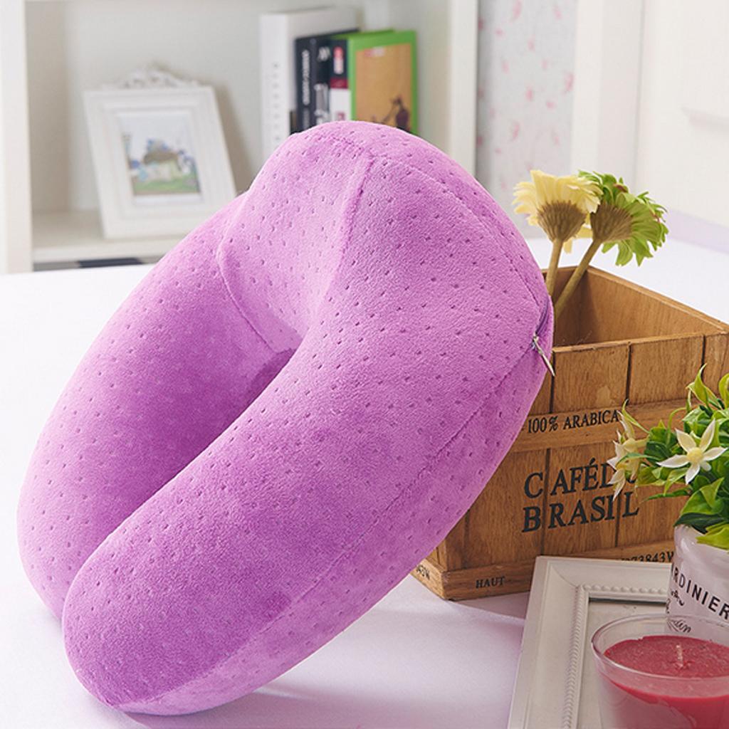 Memory Foam U Shaped Travel Pillow Neck Support Head Rest Cushion Purple