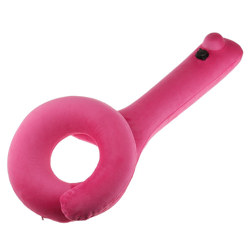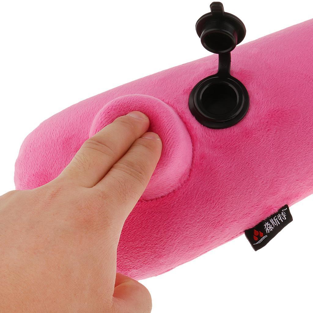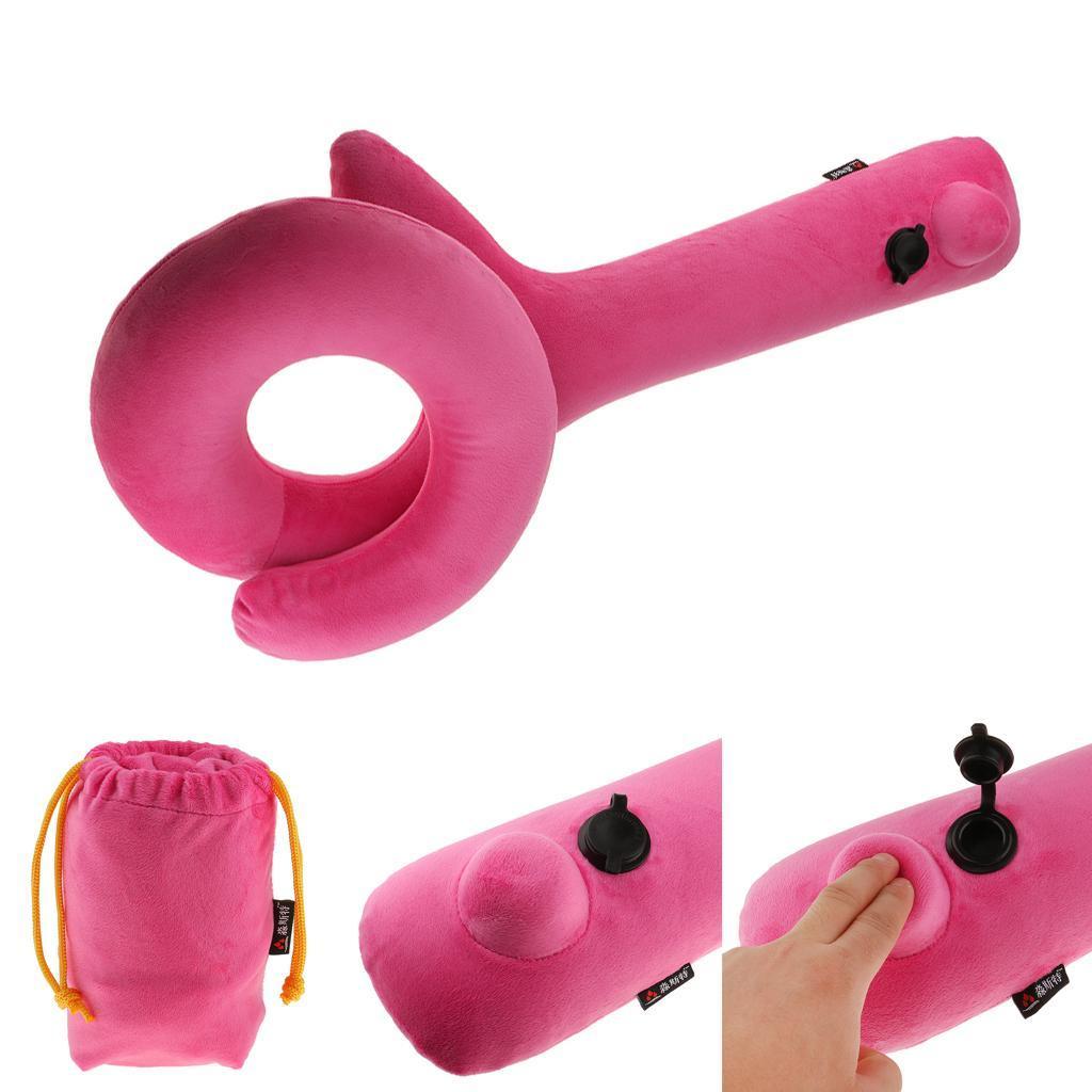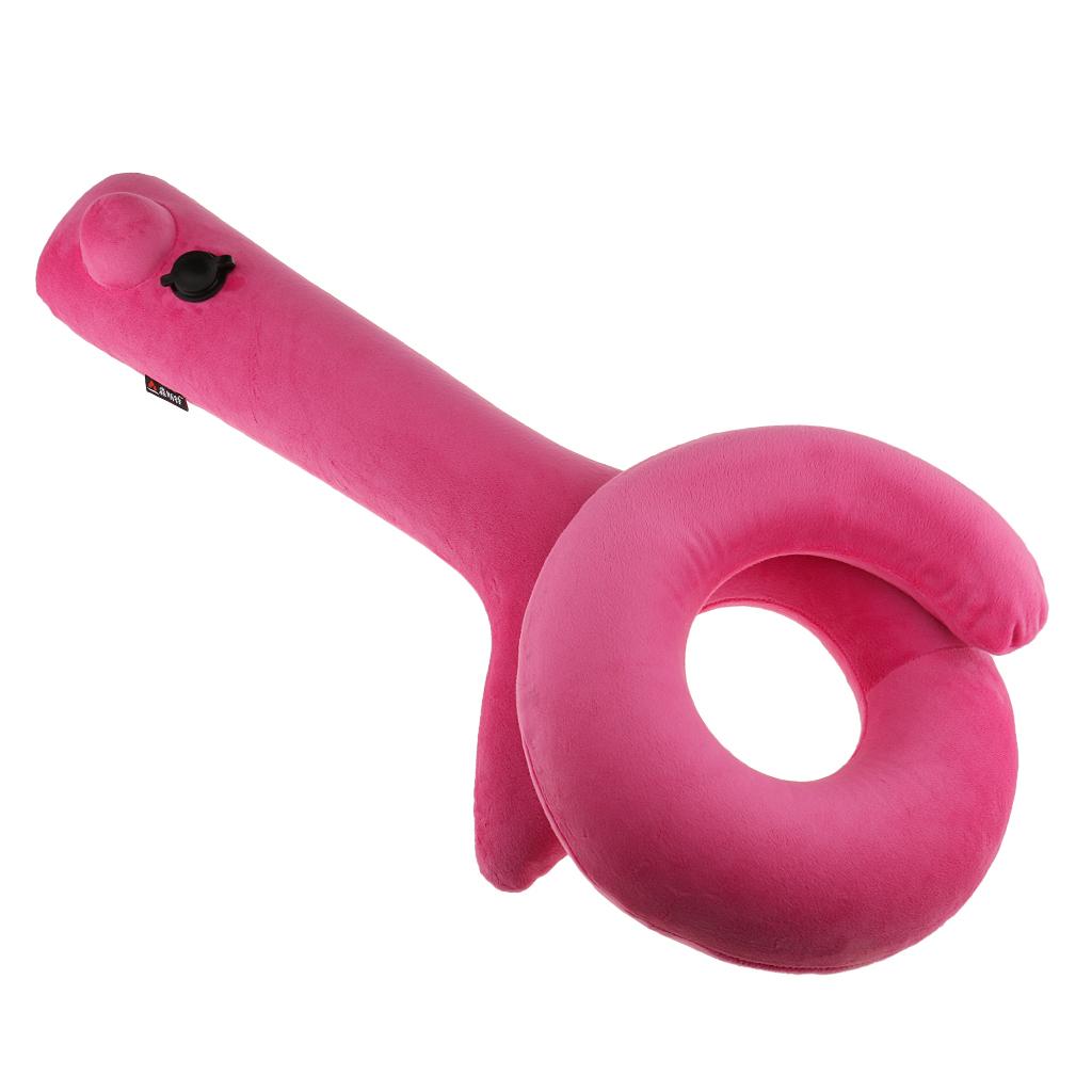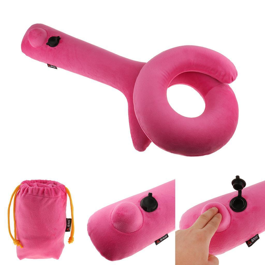 Q-Shape Velet Inflatable Travel Neck Pillow for Airplanes Trains Office Pink