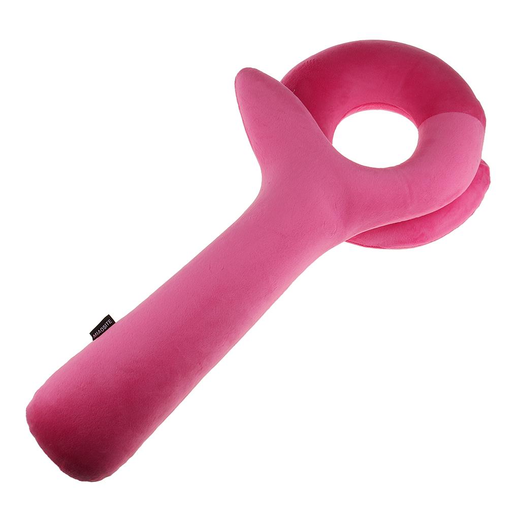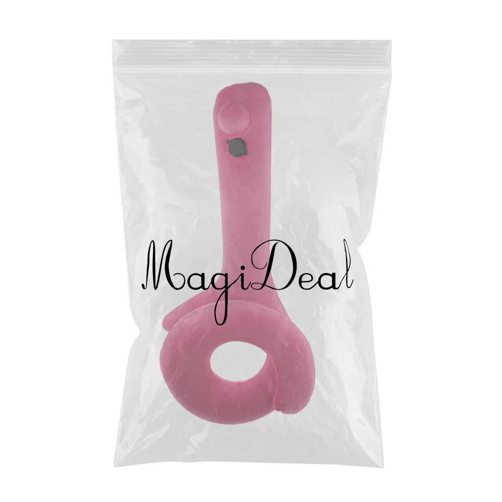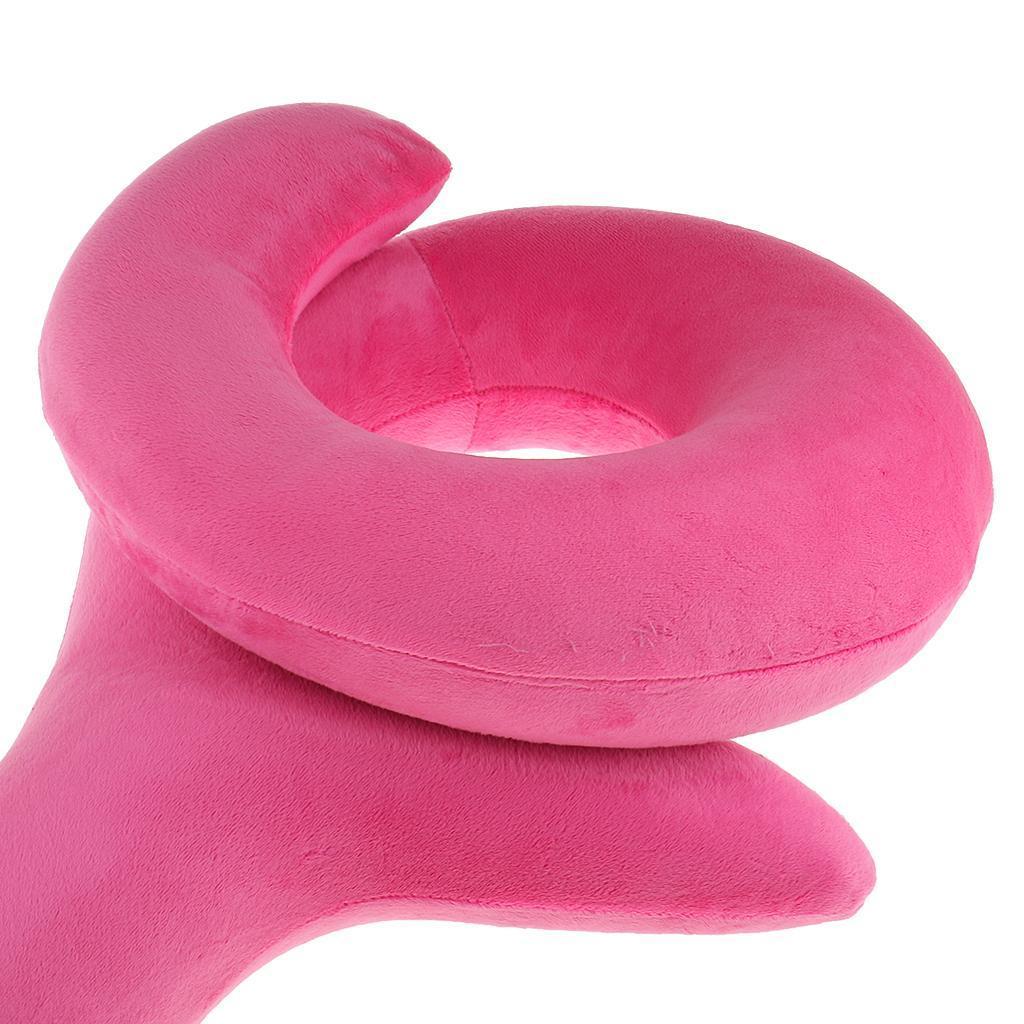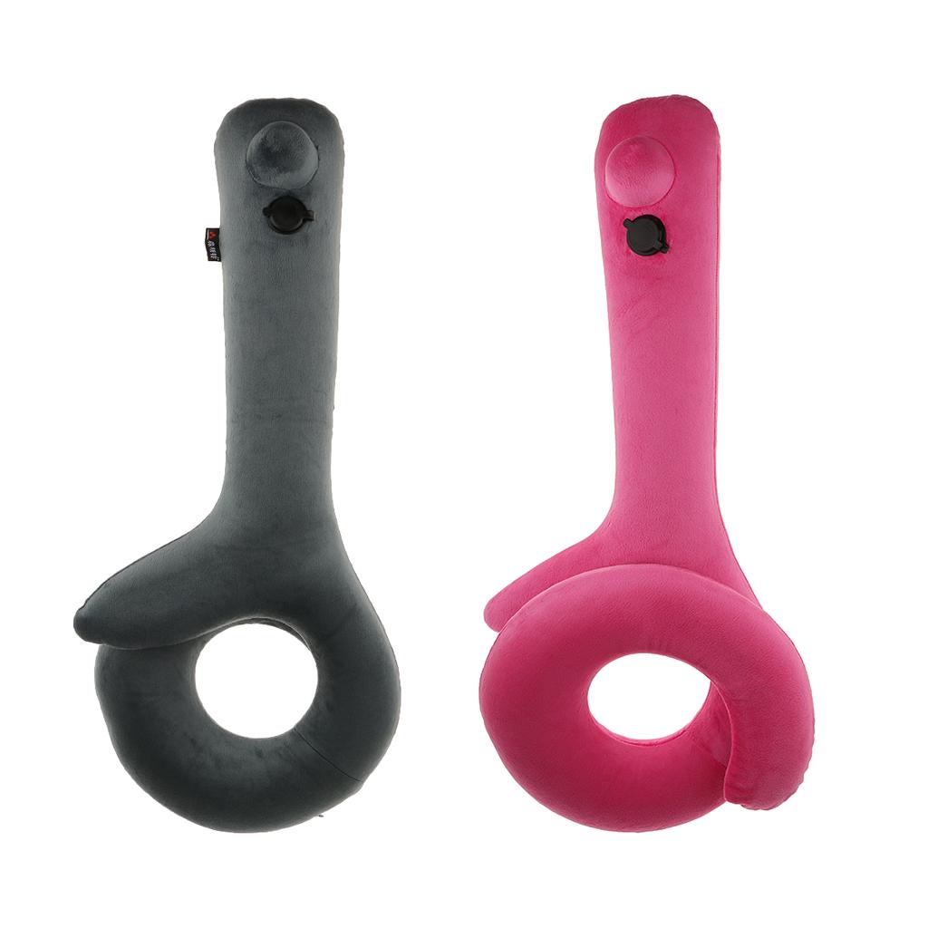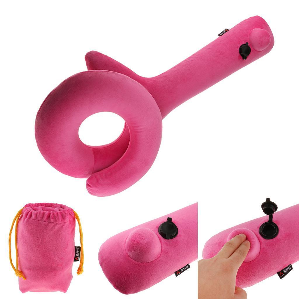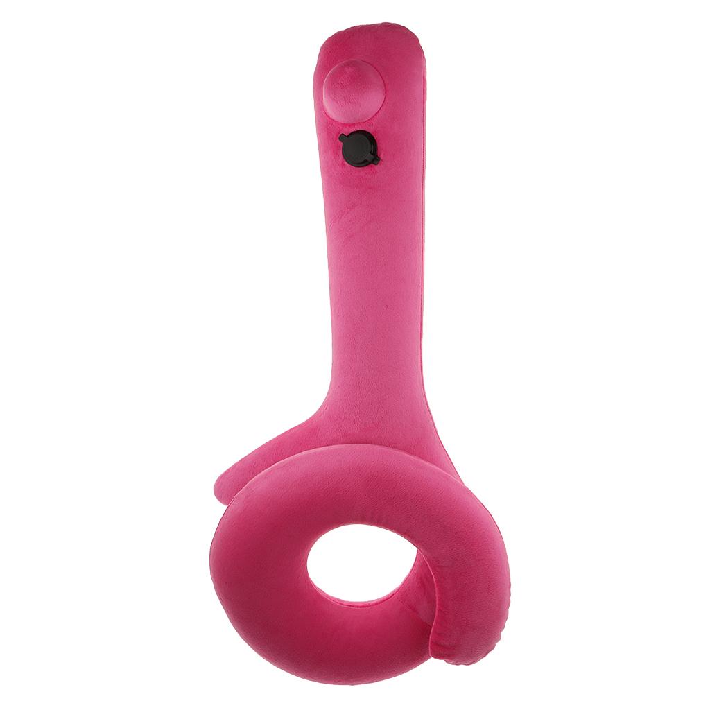 Q-Shape Velet Inflatable Travel Neck Pillow for Airplanes Trains Office Pink