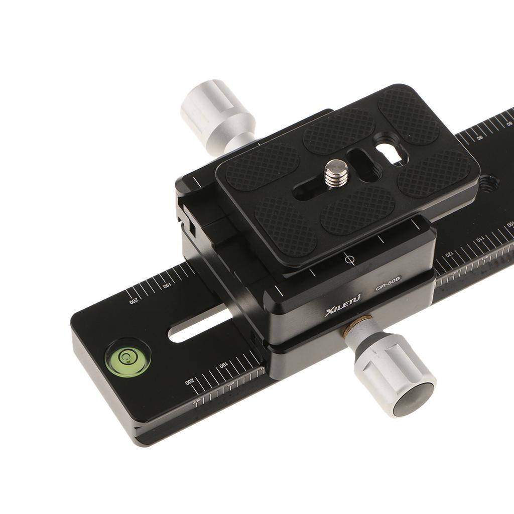 The 240mm slide-in quick release plate has 1/4" connecting screw and two safety stop screws for Cameras, Ballheads, Panorama Head and other Arca-Swiss compatible Quick Release clamps.