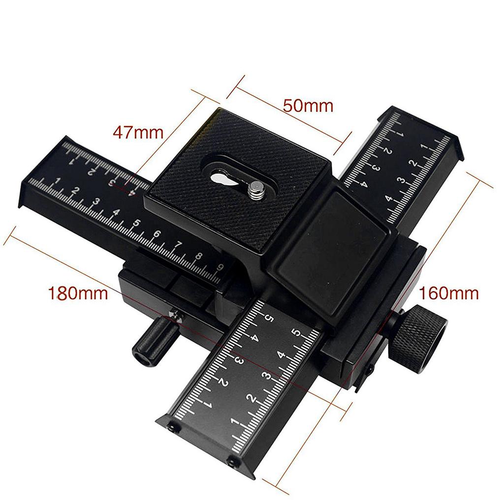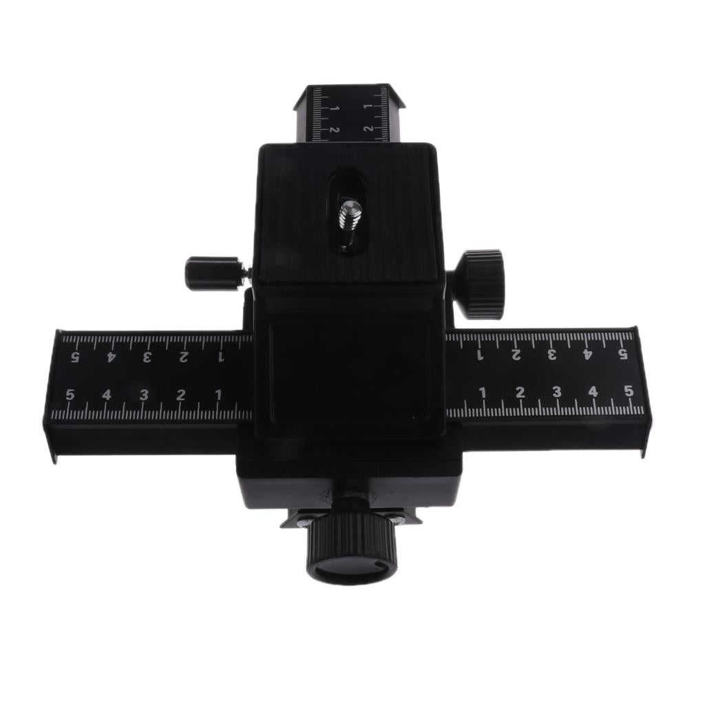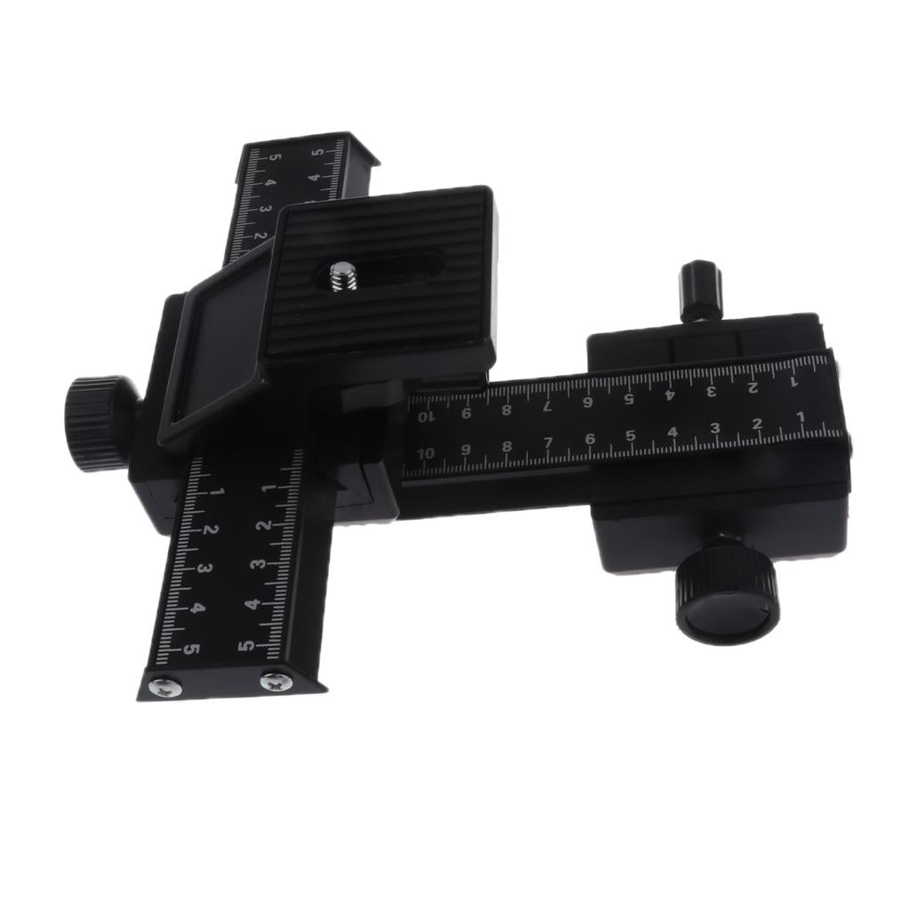 The 4-ways Macro Focusing Slide Rail can be adjusted in four directions with two 6" rails: forward, backward, left and right. (Kindly please tighten the knobs after you adjust to keep the camera from slightly moving after you have set it up)