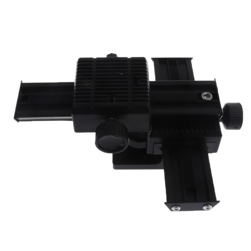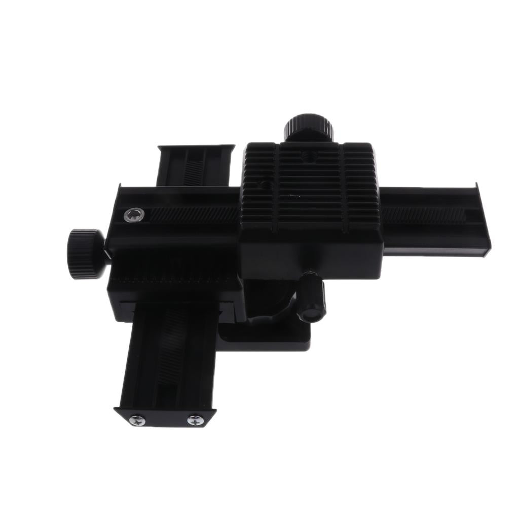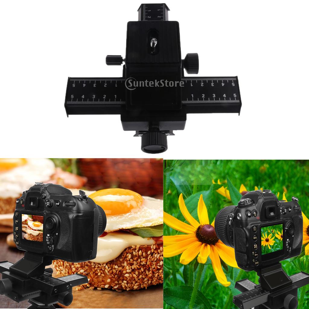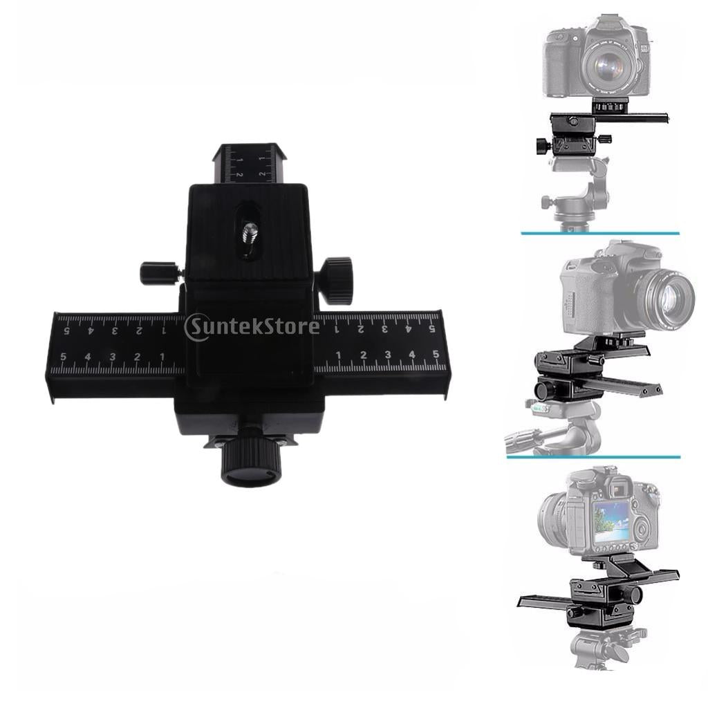The 4-ways Macro Focusing Slide Rail can be adjusted in four directions with two 6" rails: forward, backward, left and right. (Kindly please tighten the knobs after you adjust to keep the camera from slightly moving after you have set it up)