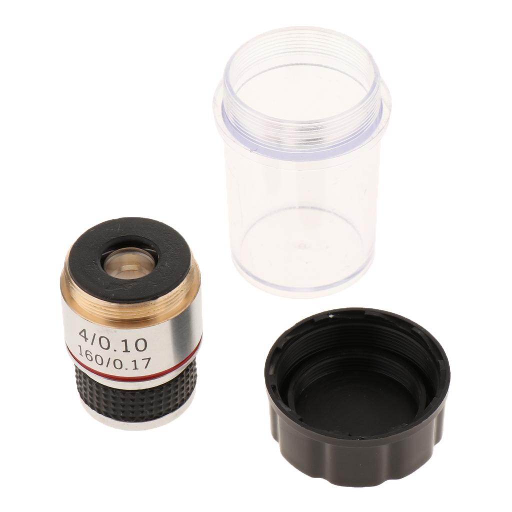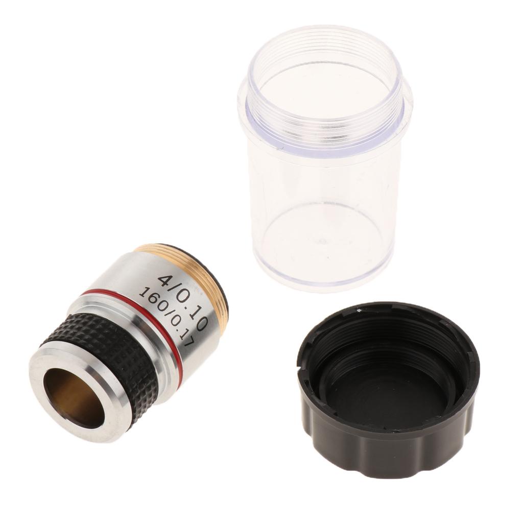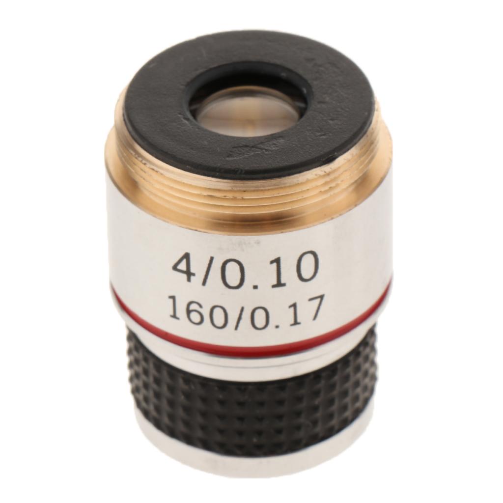 This 4X/0.10, DIN 160/0.17(spring, oil) Achromatic microscope objective lens fits common size compound microscopes.