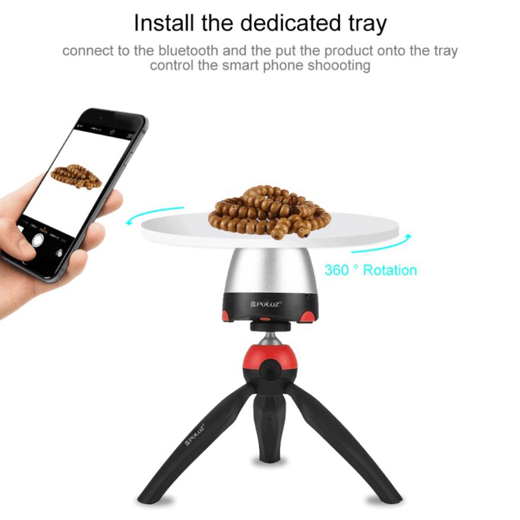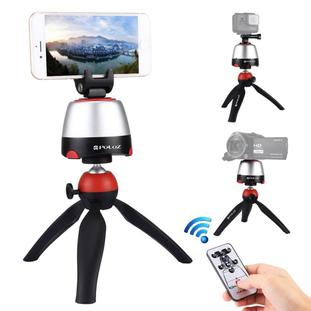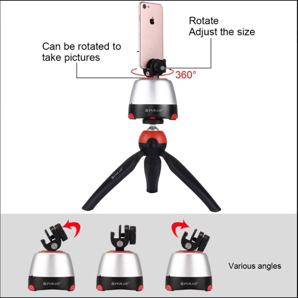 Panning action is controlled by the supplied infrared controller instead of the smart phone. The base only has power on/off switch. The remote control can be paired to your smartphone, given that the smartphone system is above Android 3.0 or iOS 4.0. Take a picture press the photo capture button on the remote control to trigger the smartphone.