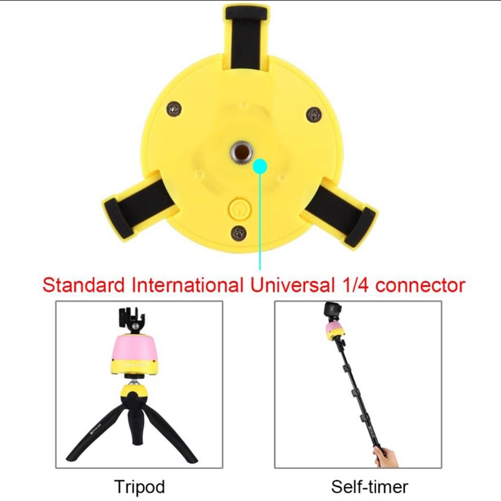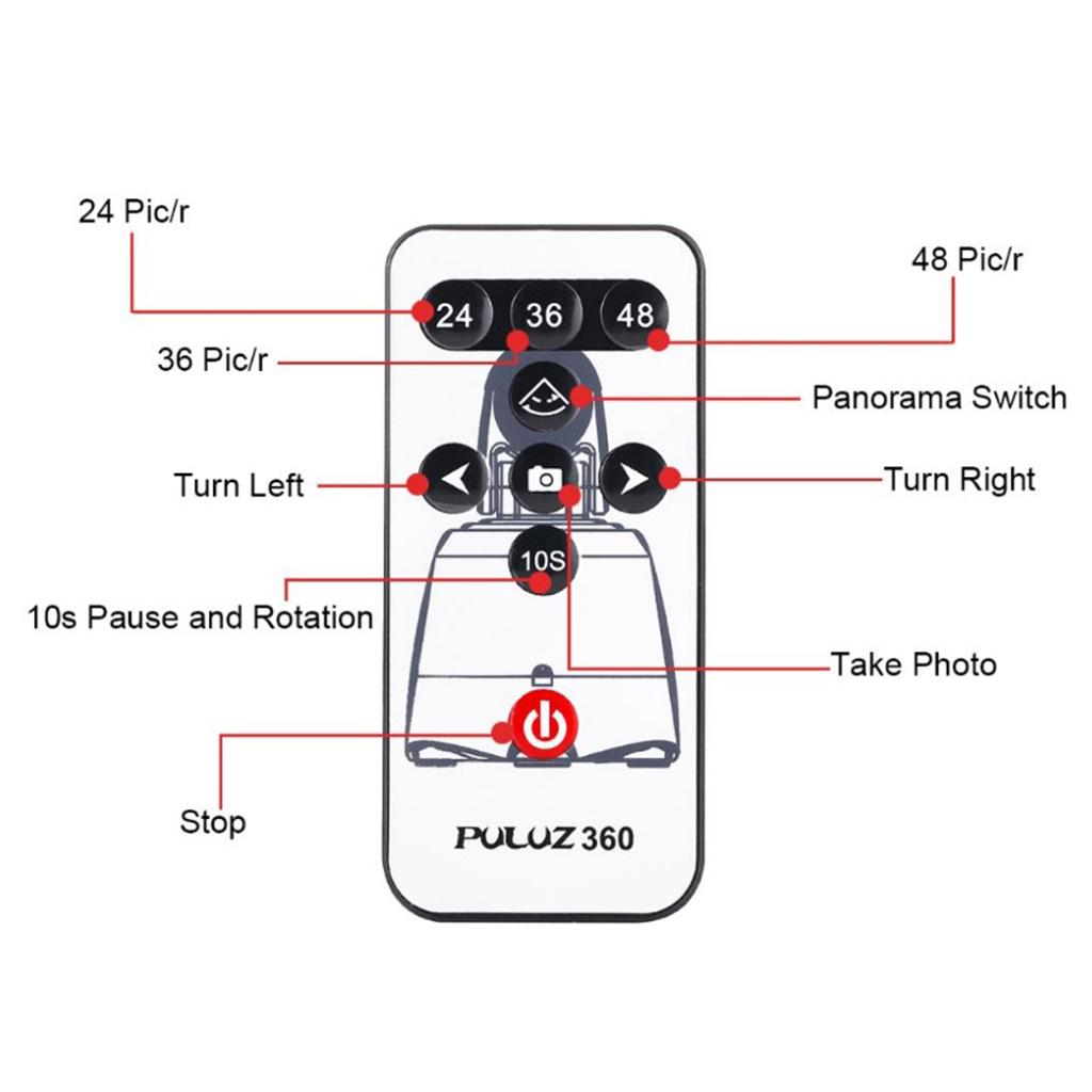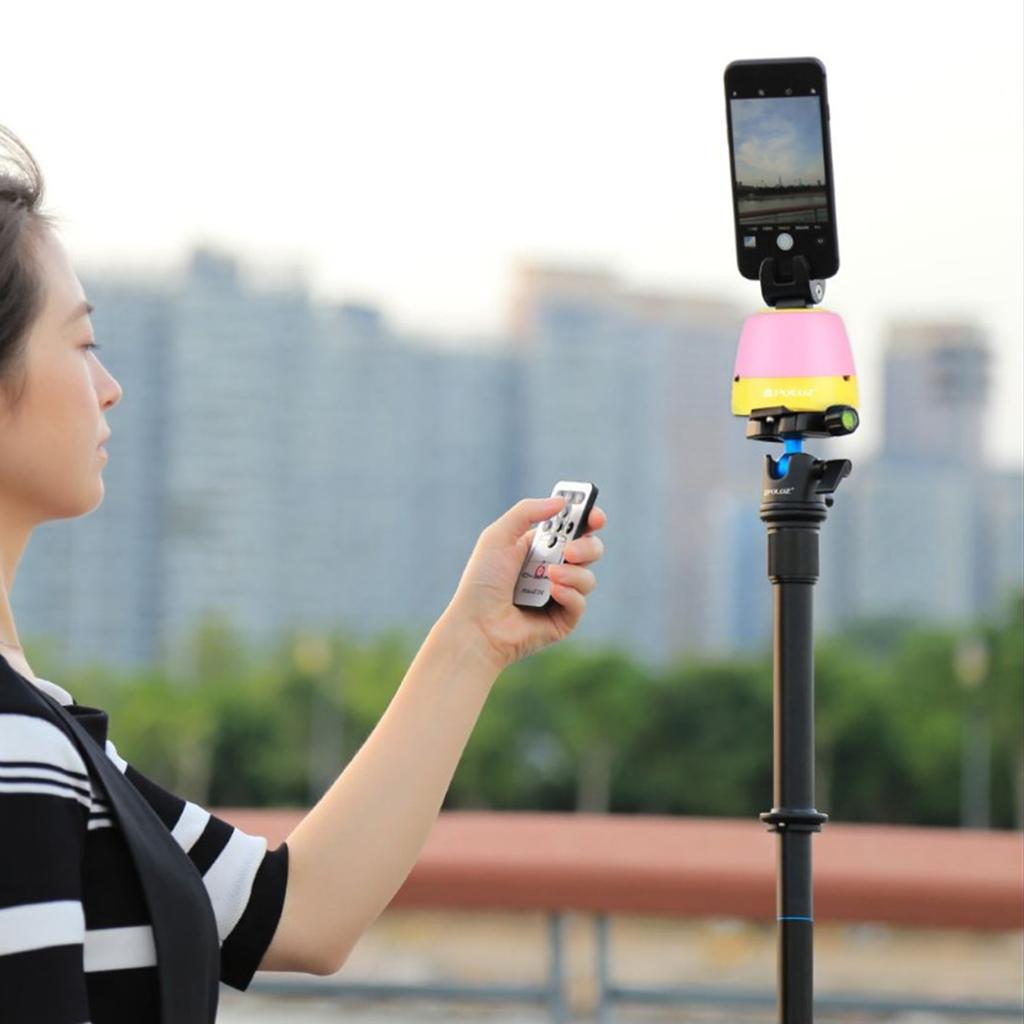 Panning action is controlled by the supplied infrared controller instead of the smart phone. The base only has power on/off switch. The remote control can be paired to your smartphone, given that the smartphone system is above Android 3.0 or iOS 4.0. Take a picture press the photo capture button on the remote control to trigger the smartphone.