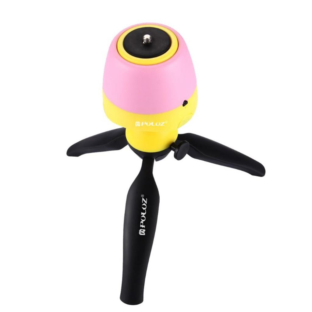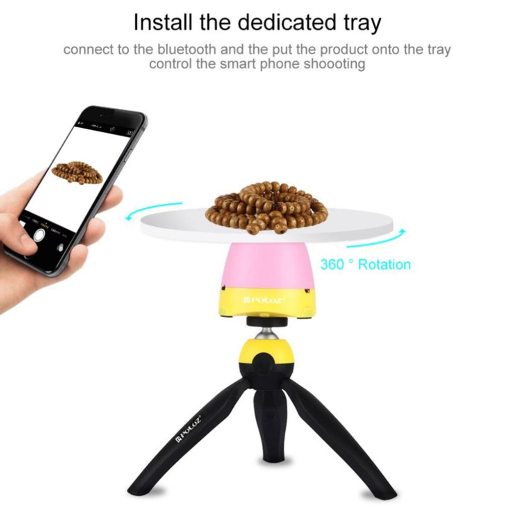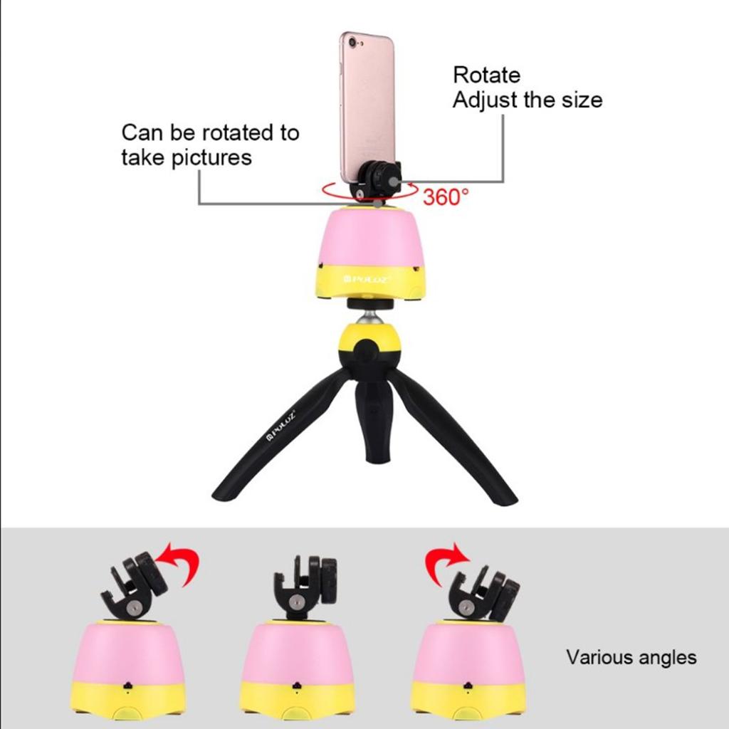Panning action is controlled by the supplied infrared controller instead of the smart phone. The base only has power on/off switch. The remote control can be paired to your smartphone, given that the smartphone system is above Android 3.0 or iOS 4.0. Take a picture press the photo capture button on the remote control to trigger the smartphone.