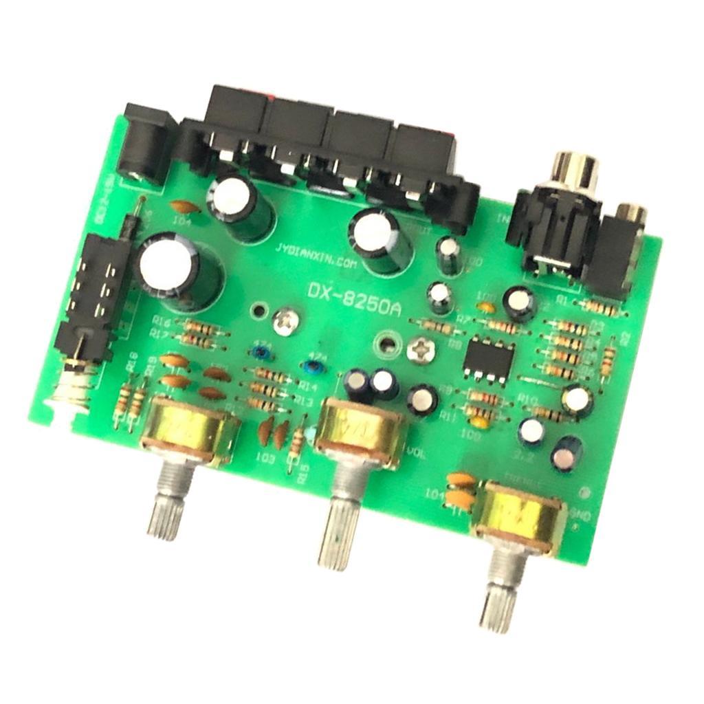Amplifier with balanced volume adjustment, medium volume adjustment, treble adjustment, bass adjustment potentiometer and indicator light