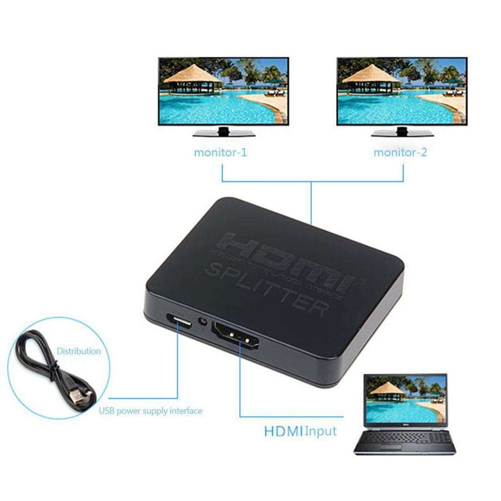 The splitter allows one HDMI device to be split easily to two HDMI compatible monitors or projectors.