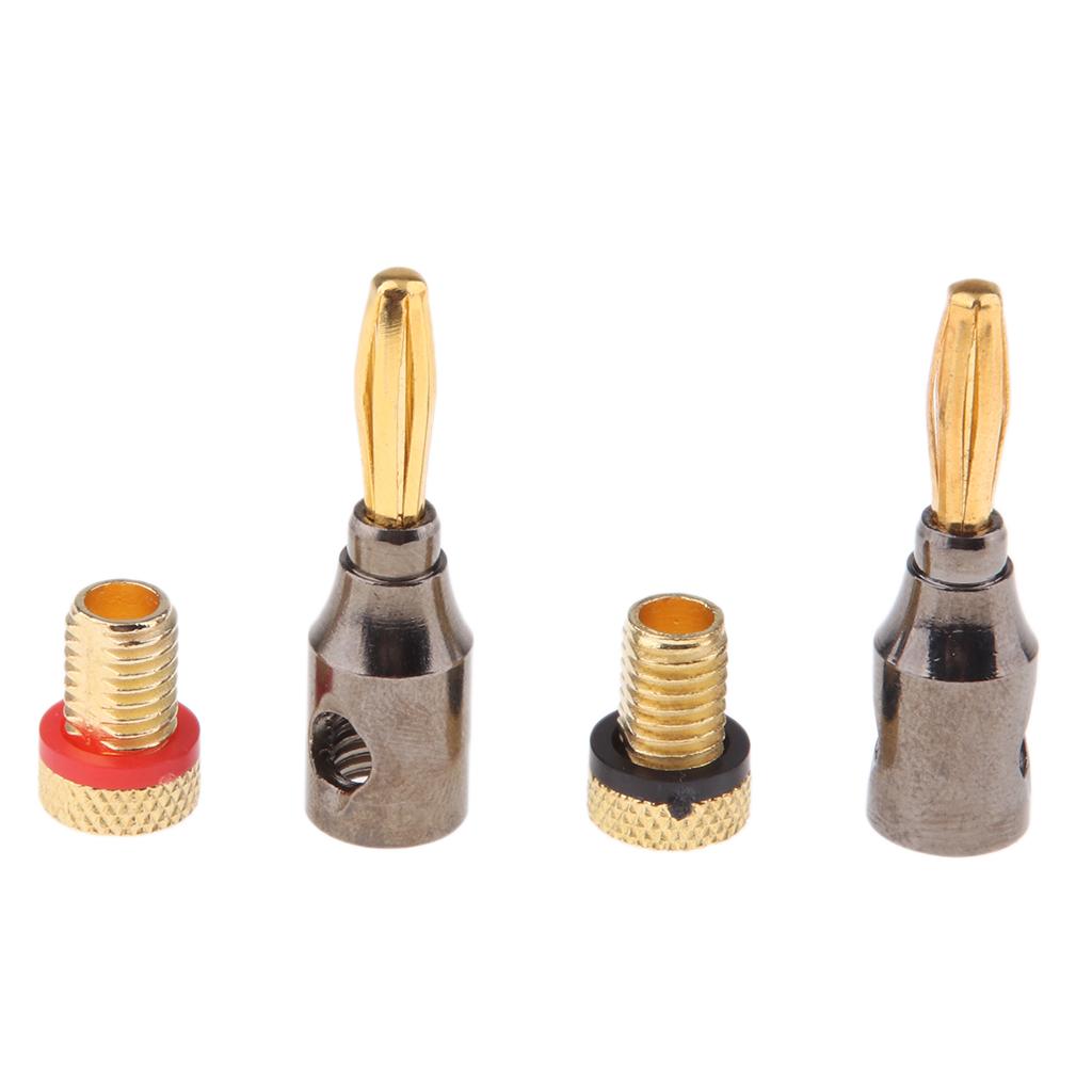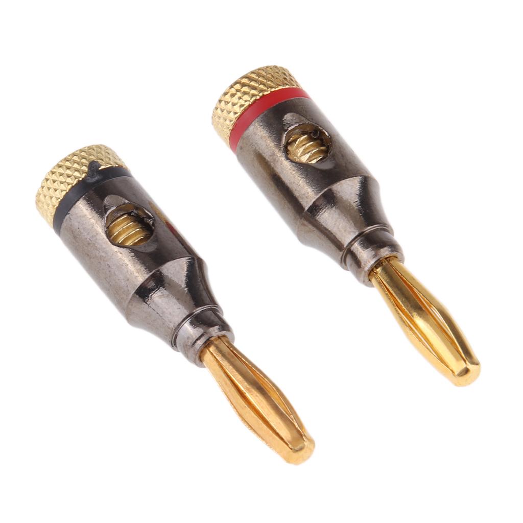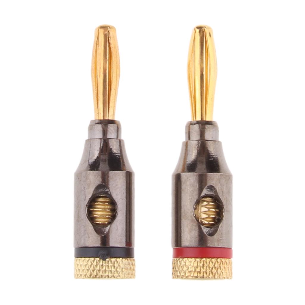 2Pcs 4mm Banana Plugs Audio Jack 24k Gold Dual Screw Lock Speaker Connector