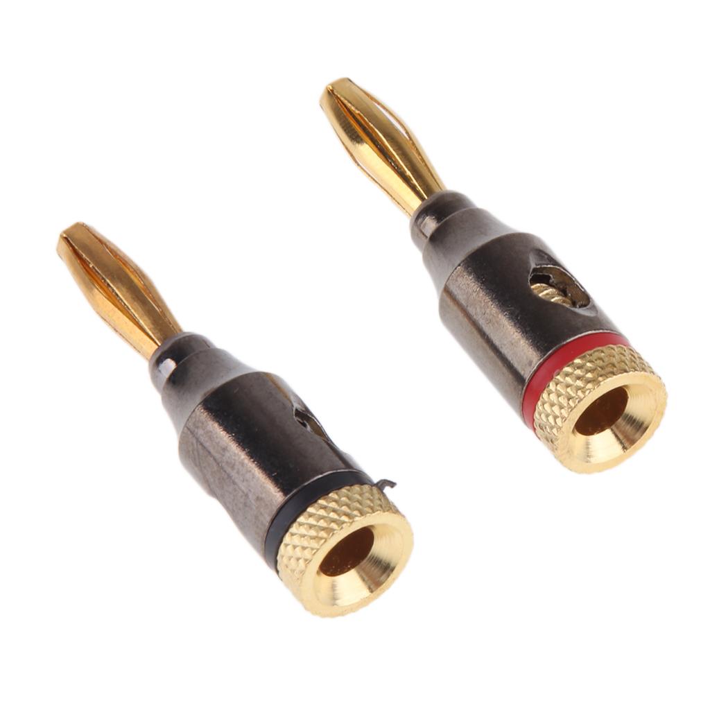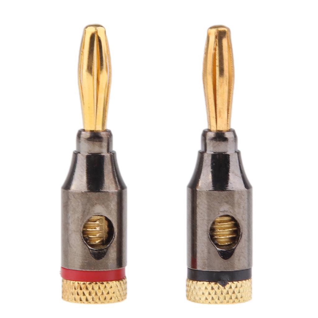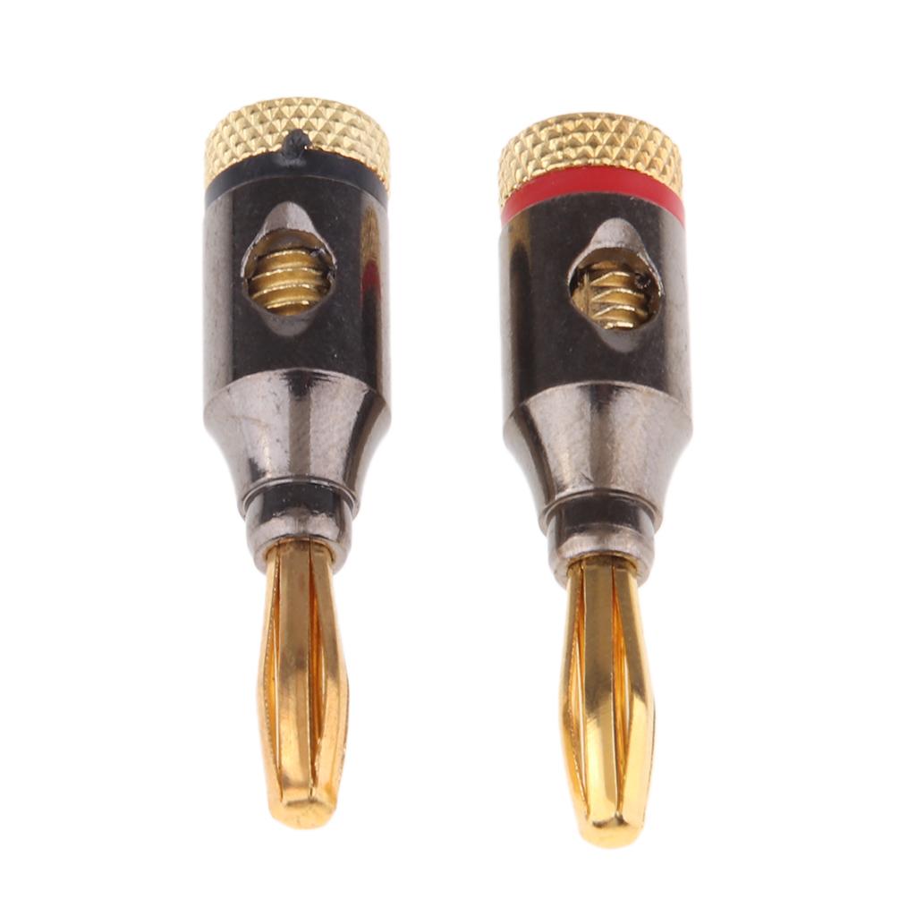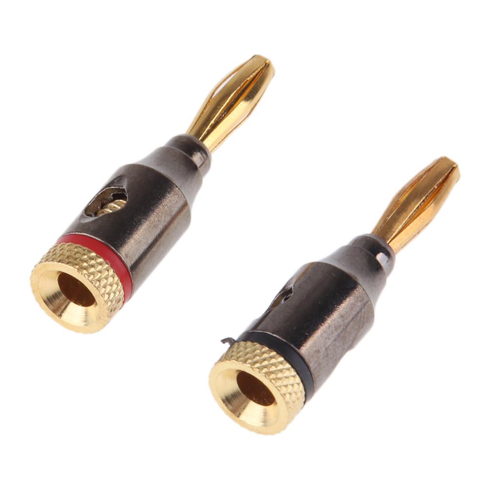 2Pcs 4mm Banana Plugs Audio Jack 24k Gold Dual Screw Lock Speaker Connector