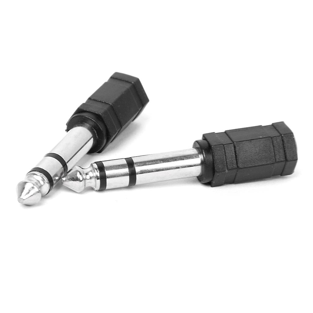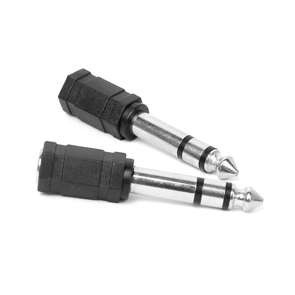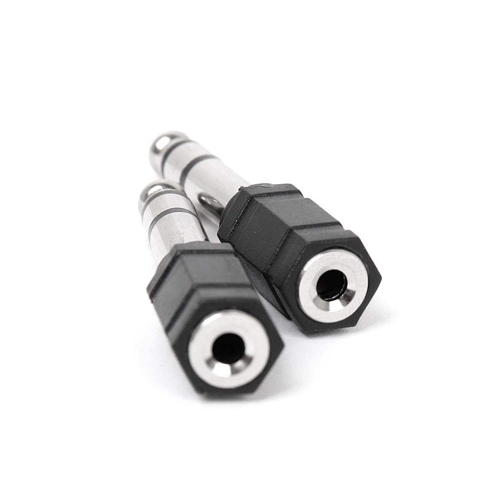 This great audio adapter can convert single 6.35mm male to 3.5mm stereo female. It can split 3.5mm male stereo to 6.35mm stereo female connectors. This audio adapter is sliver metal construction with black plastic guard circle. It is easy to use and convenient to carry. A Great audio adapter used with PC, stereo, MP3 players!