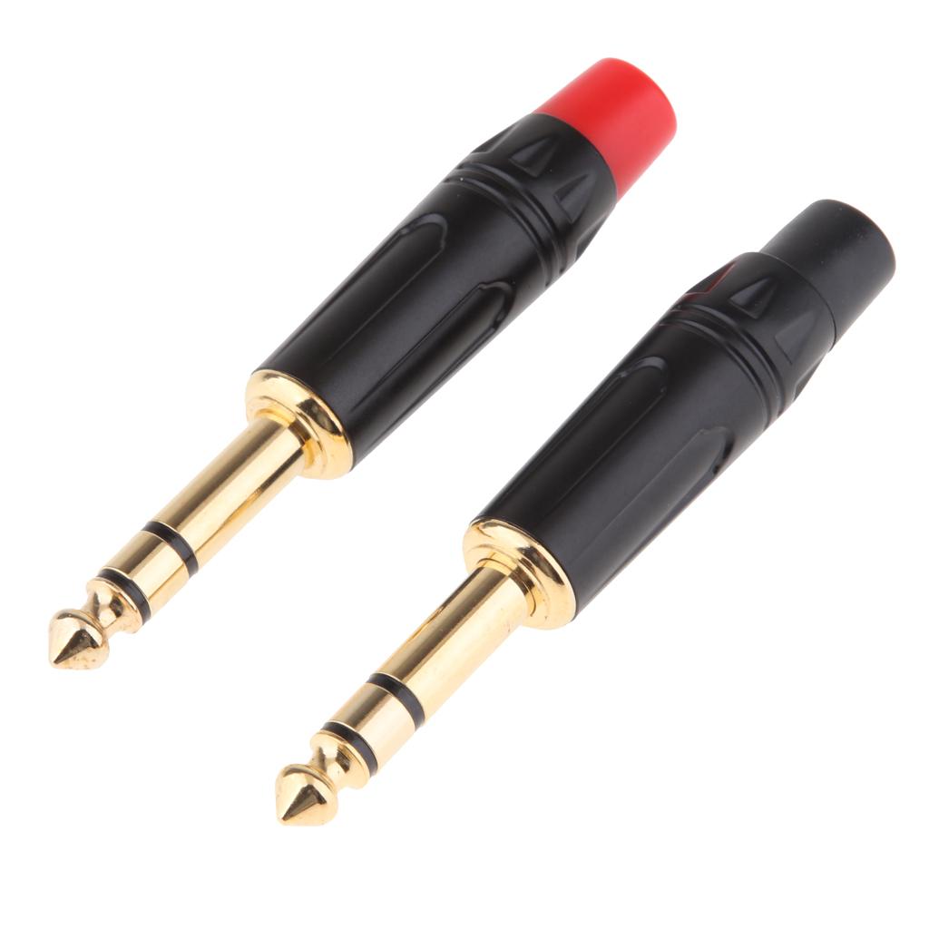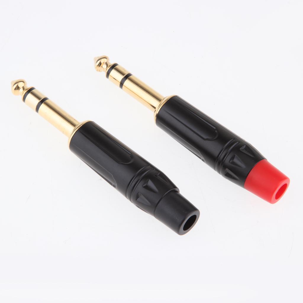 2Pieces 6.35mm 1/4inch 3Pole Wire Connector Male Jack Plug Adapter Solder Connector