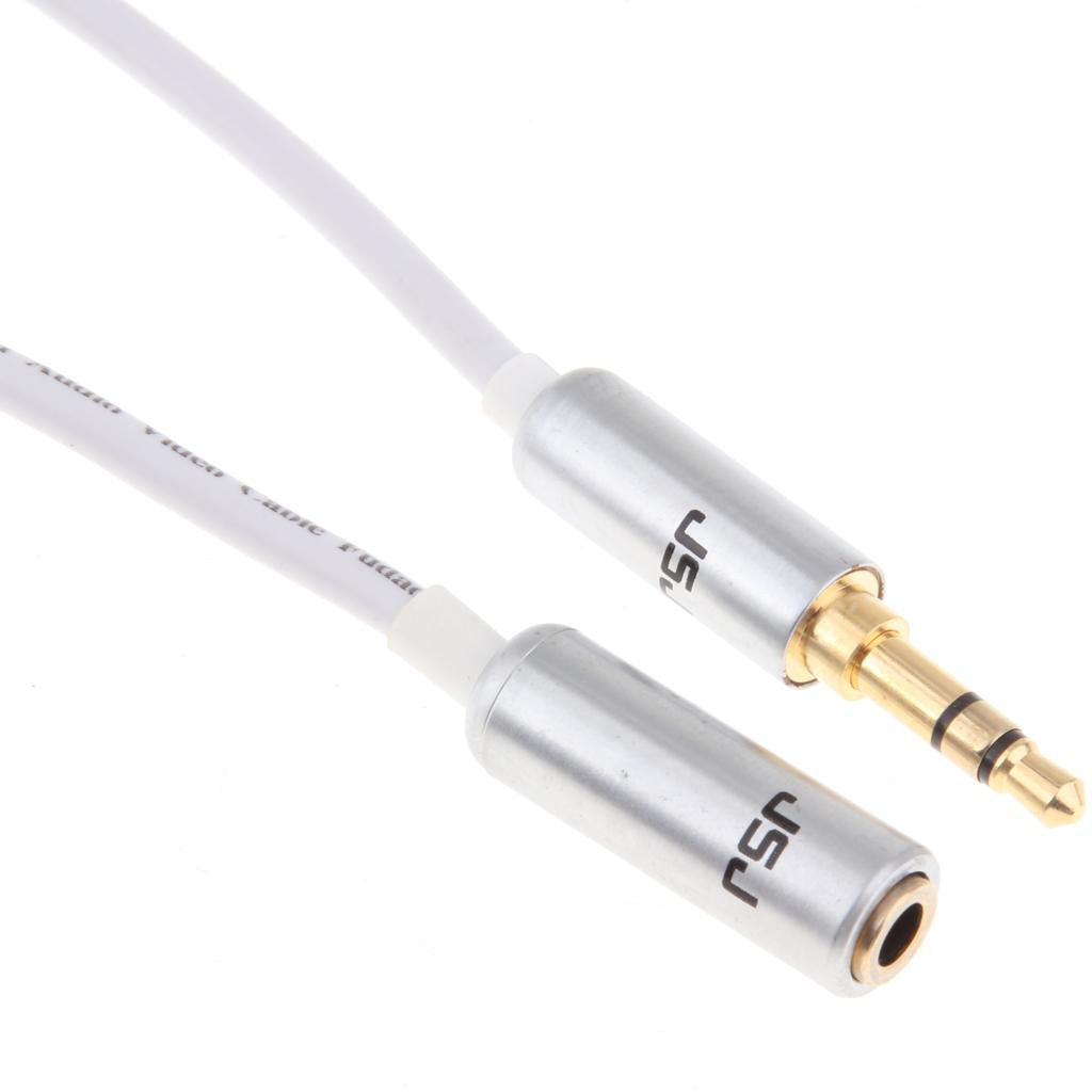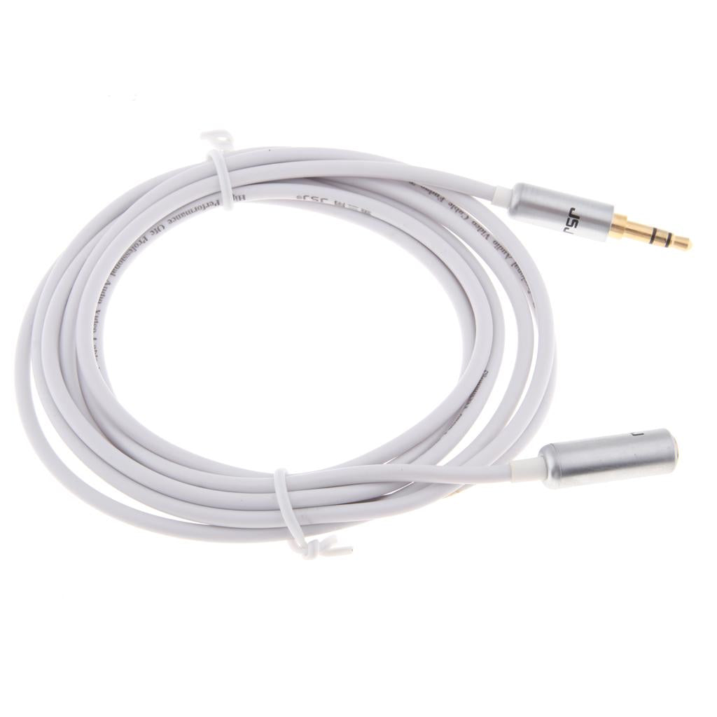 3.5mm male-to-female stereo audio cable transmits audio in stereo format