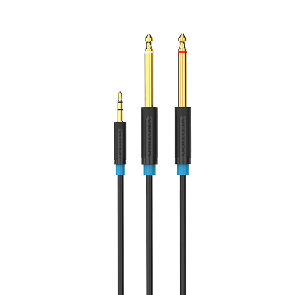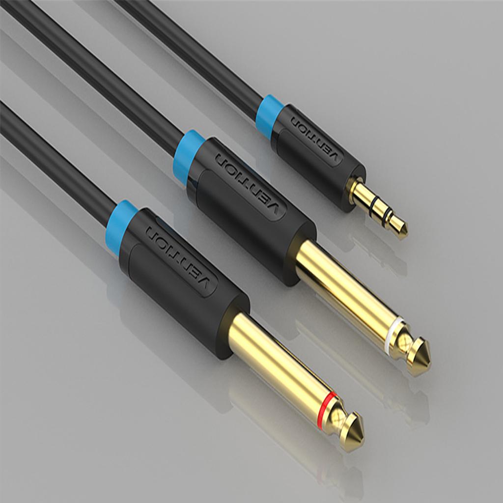 3.5mm Plug To Double 6.5mm Adapter Male To Male Audio Cable Black 0.5meter