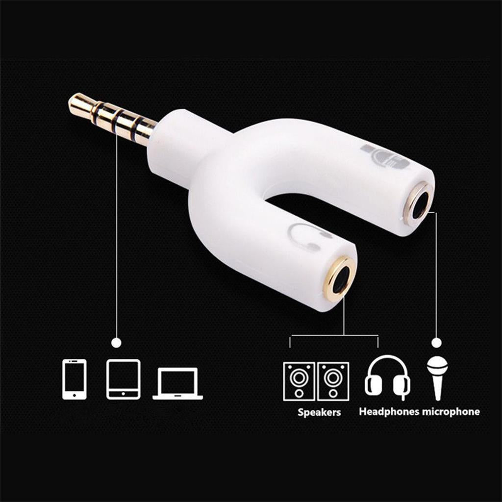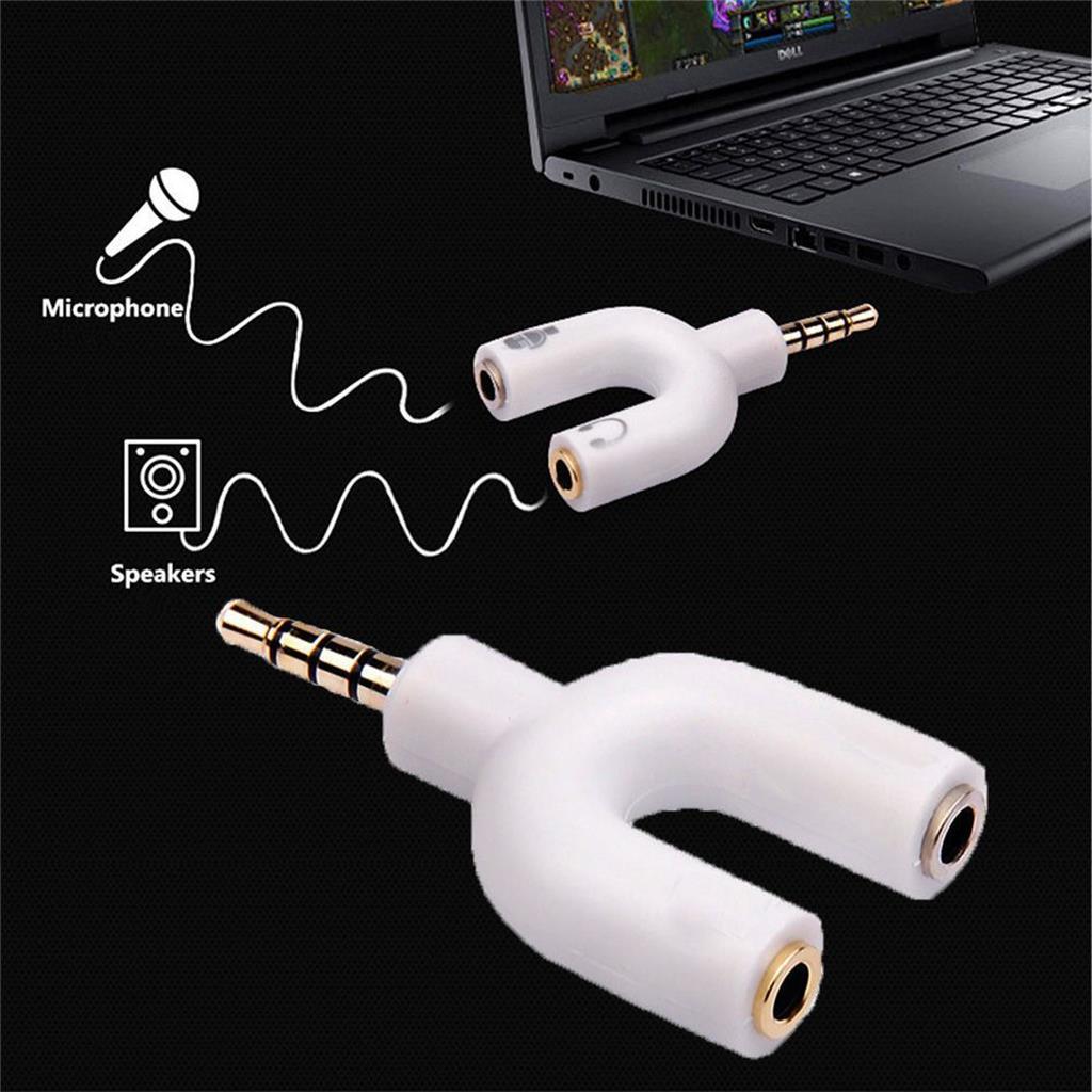 Turns a 3.5mm combo headphone/microphone port into two distinct ports - one 3.5mm headphone jack and another one 3.5mm microphone port