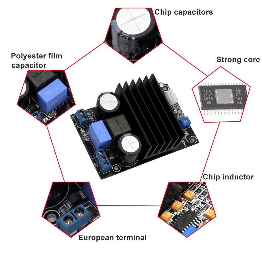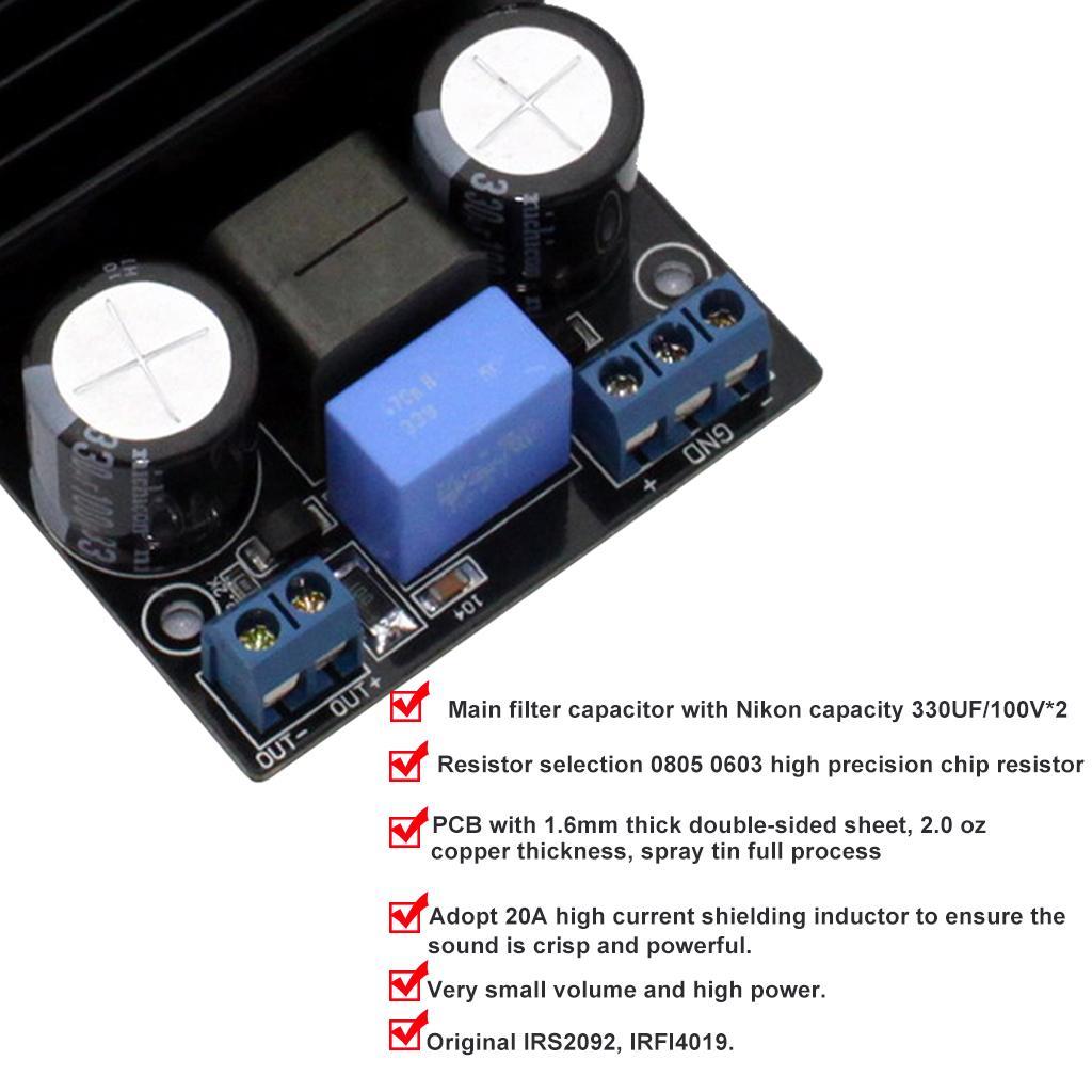 The 20A high current shielding inductor is used to ensure the sound is crisp and powerful.