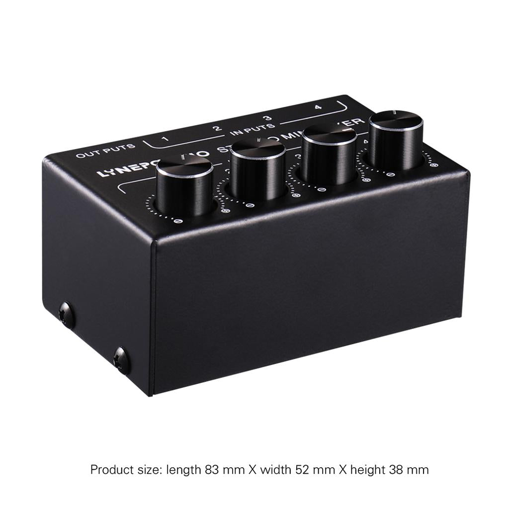 -Mini passive stereo mixer is a stereo 4 channel passive mixer for extended control tuning, mixing instrument, CD player, tape player, computer, mobile phone, tablet and so on.