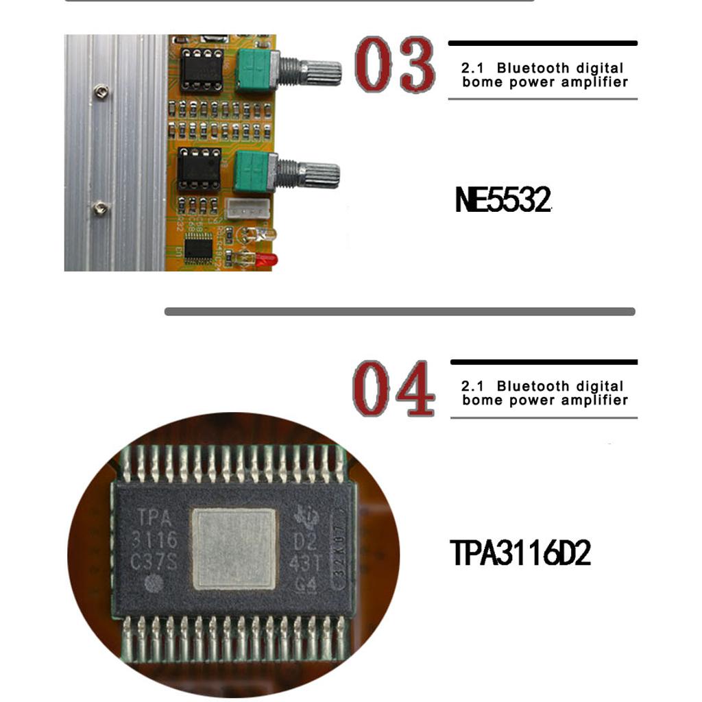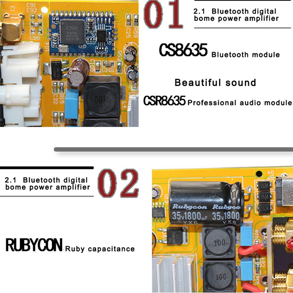Input: Bluetooth 4.0/RCA/3.5mm,Output: 2.1 channel (left channel + right channel + subwoofer channel)