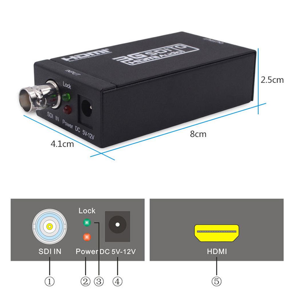 The mini SDI to HDMI converter allows SD-SDI, HD-SDI and 3G-SDI signals to be shown on HDMI displays while ensuring high bit rates of 2.970 Gbit/s to give you fast signal transmission without any loss.