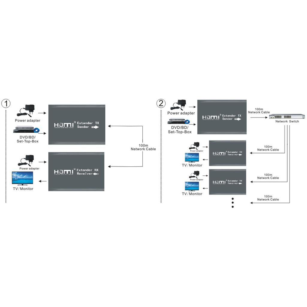 HD Signal transmission: By using single cat-5e or cat-6(recommended) cable instead of HDMI cable, it can extend the distance up to 120 meters between TX and RX.