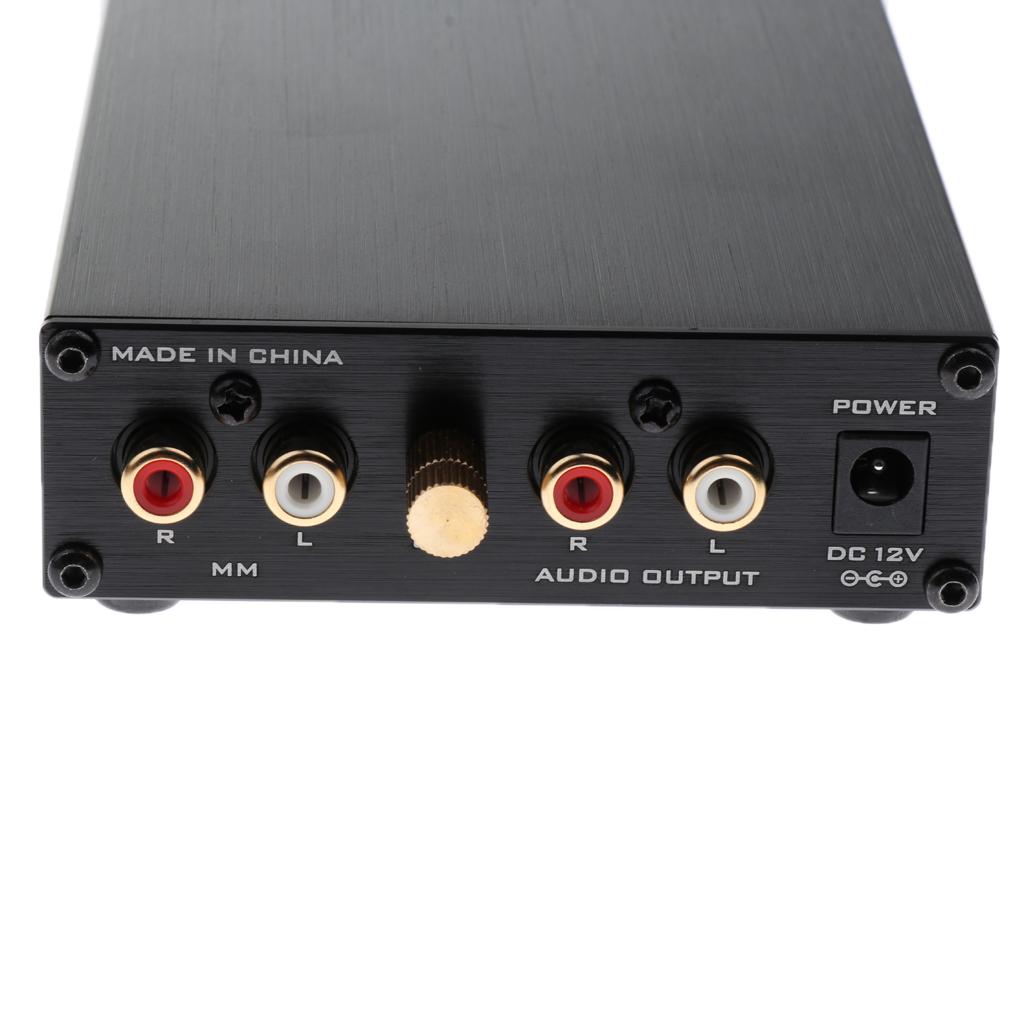 -Stereo Phono (MM) inputs and stereo RCA outputs. Connect the turntable to the RCA inputs and ground. Then, connect the amplifier receiver to the RCA outputs.