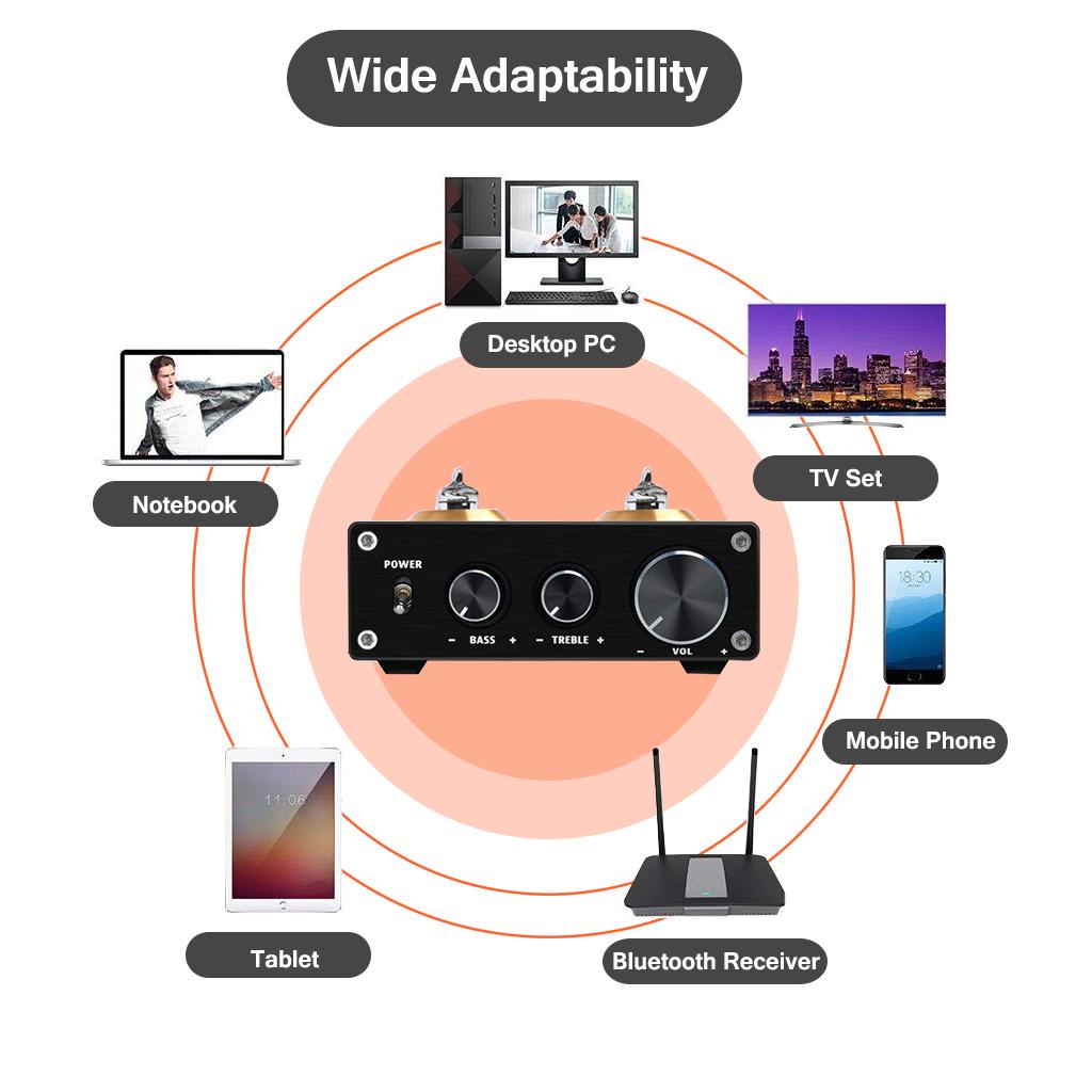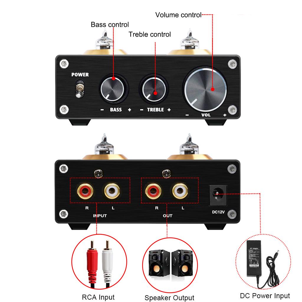 This product is a preamplifier, not a power amplifier. It should be used with a post-amplifier or an active speaker. It can not directly connect a passive speaker, a speaker or a headphone as a power amplifier; it cannot be used for car, because the car voltage is unstable and will burn.