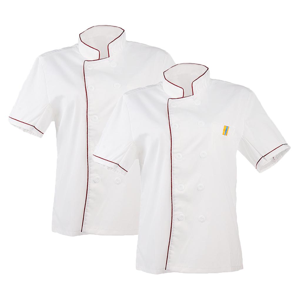 2packs Men Women Fashion Short Sleeve Chef Cook Restaurant Jacket Top Catering Coat