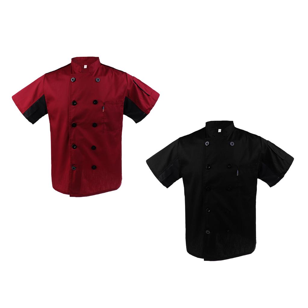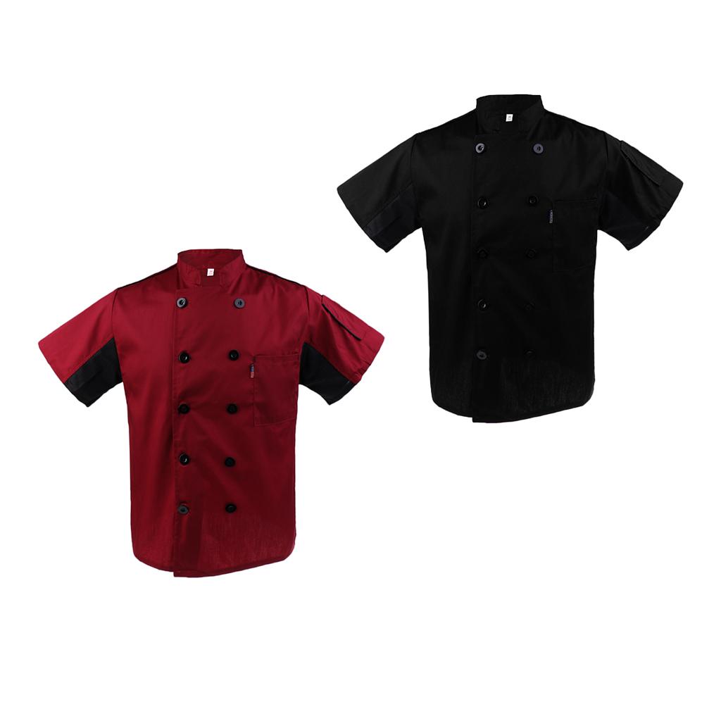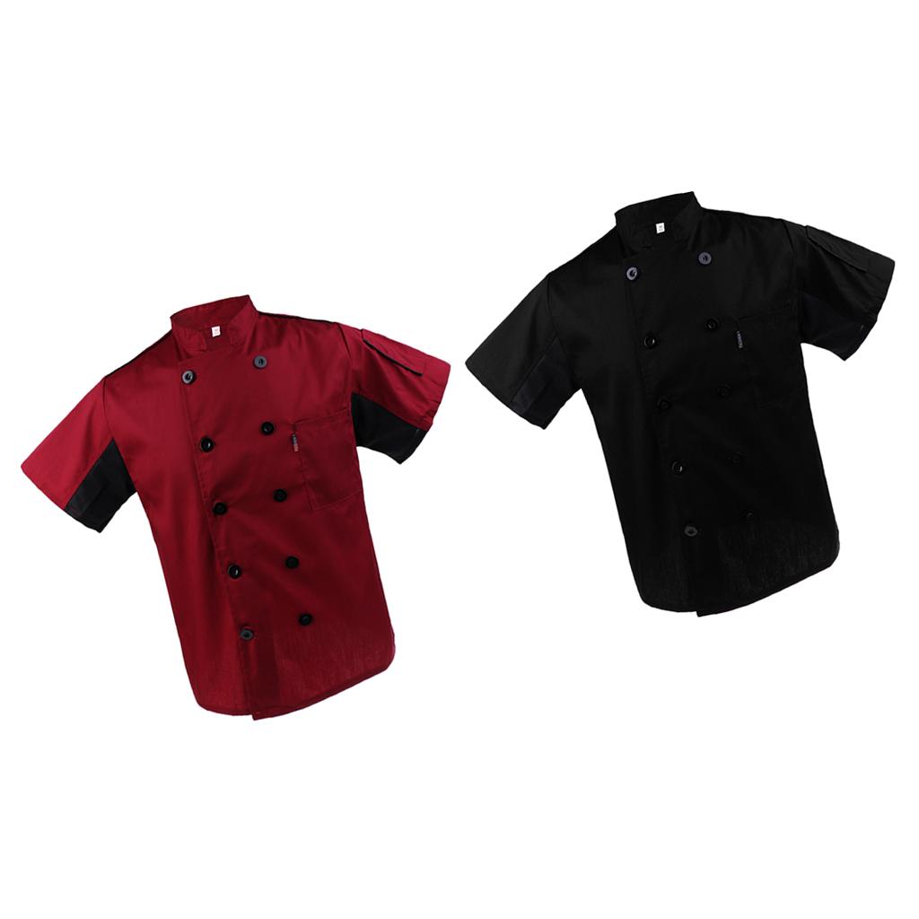 Unisex Double Breasted Short Sleeve Chef Jacket Coat Cook Hotel Uniform