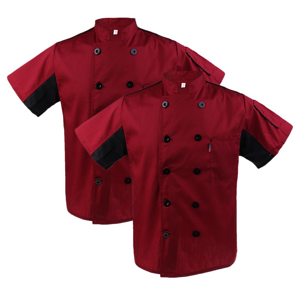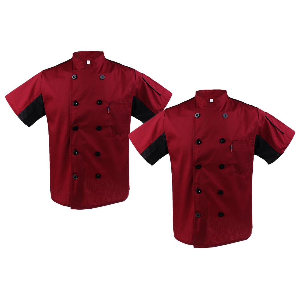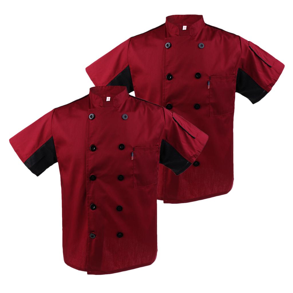 2pcs Unisex Double Breasted Short Sleeve Chef Jacket Coat Cook Uniform