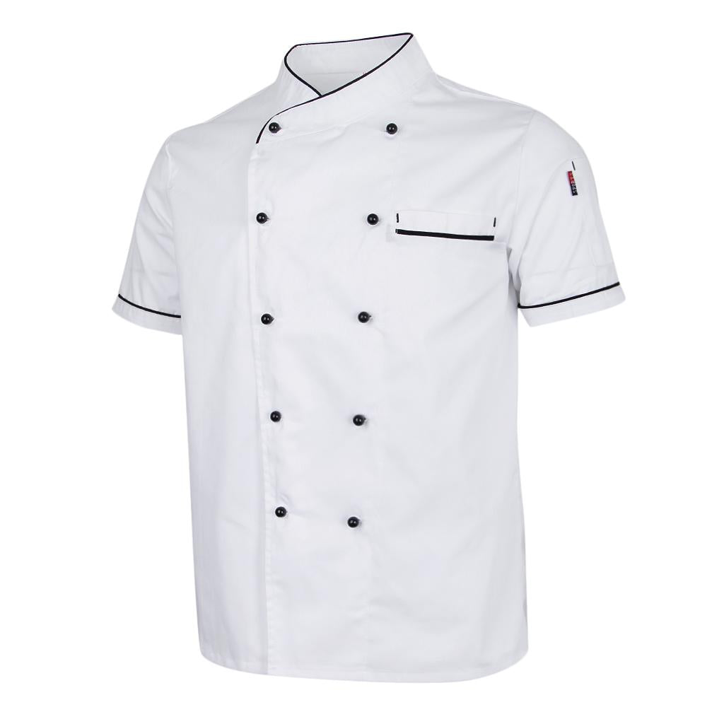 Chef Jacket Uniform Short Sleeve Hotel Kitchen Chefwear Cook Coat L White