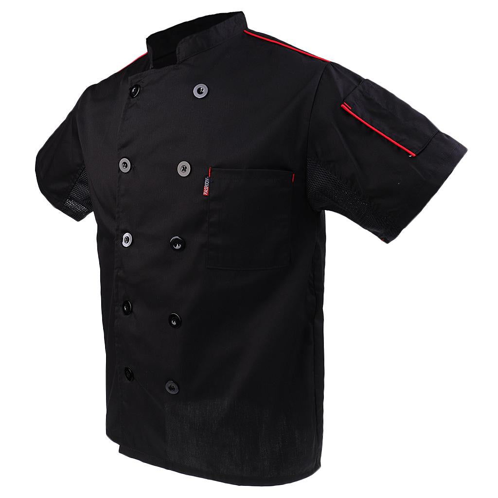 Unisex Double Breasted Short Sleeve Chef Jacket Coat Cook Hotel Uniform