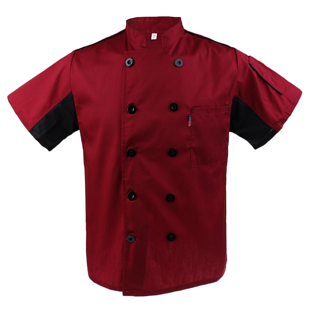 Unisex Double Breasted Short Sleeve Chef Jacket Coat Cook Hotel Uniform